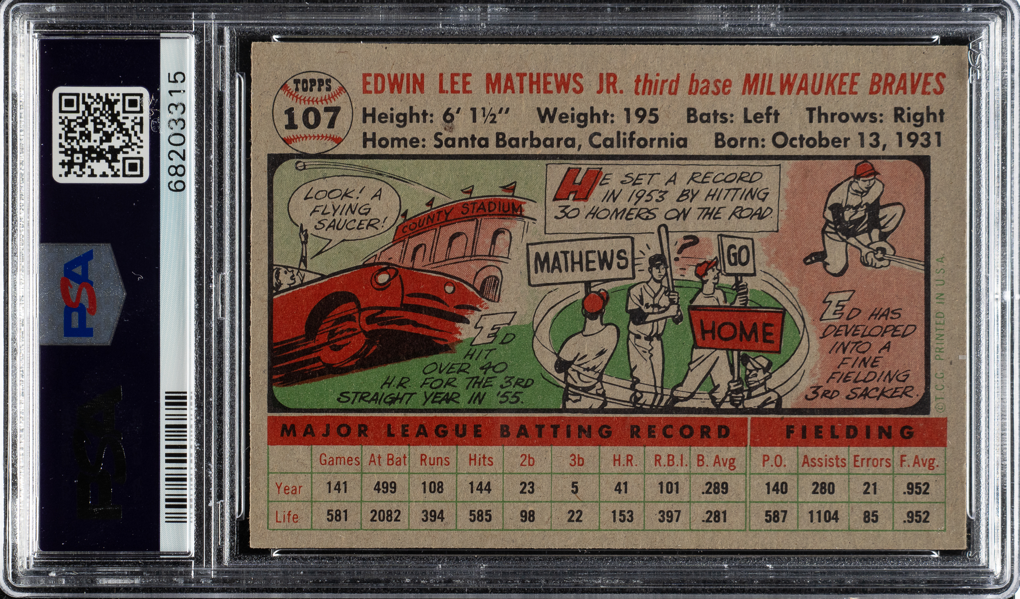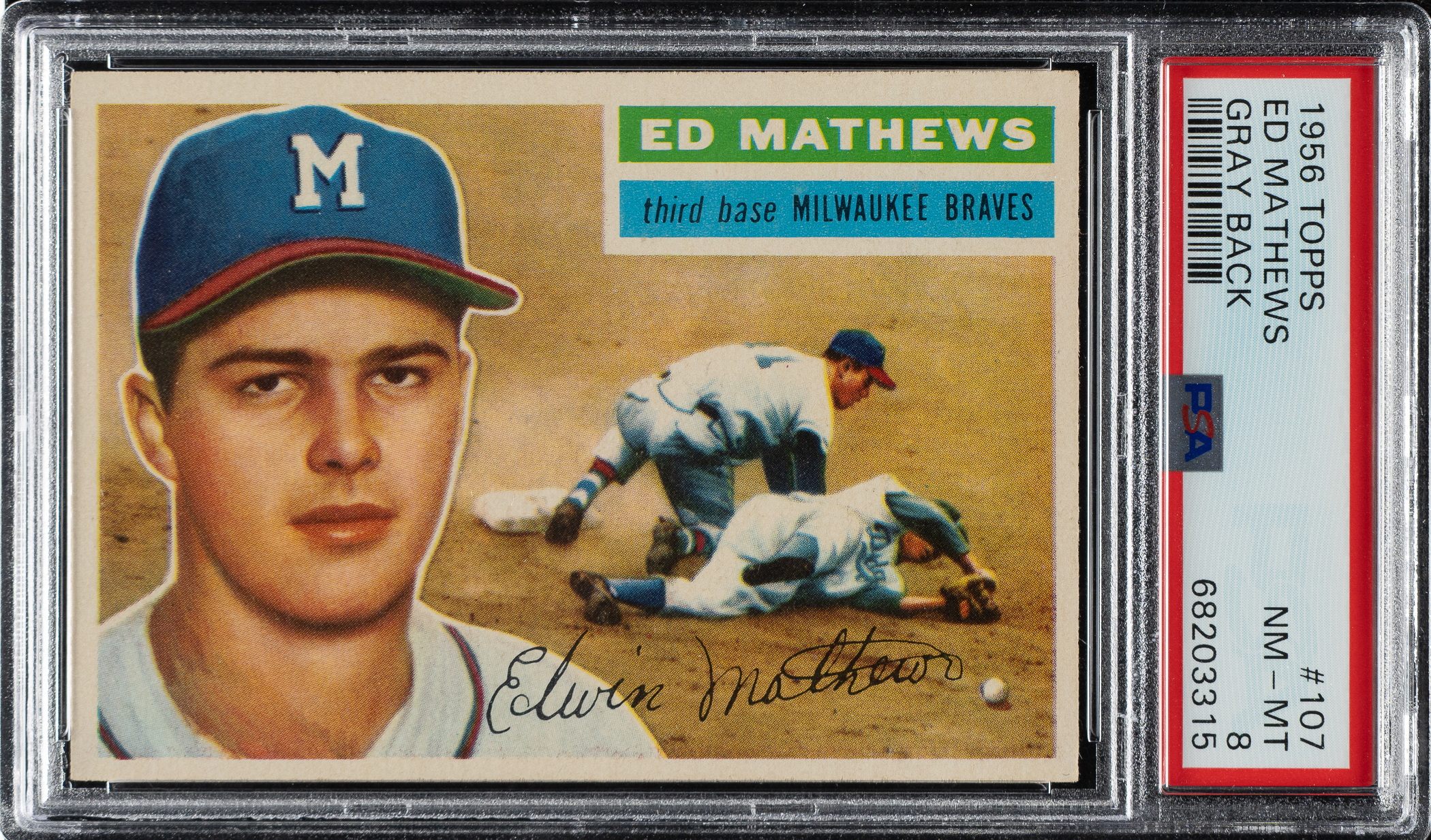 Graded NM-MT 8 by PSA. Milwaukee Braves Hall of Famer Ed Mathews.