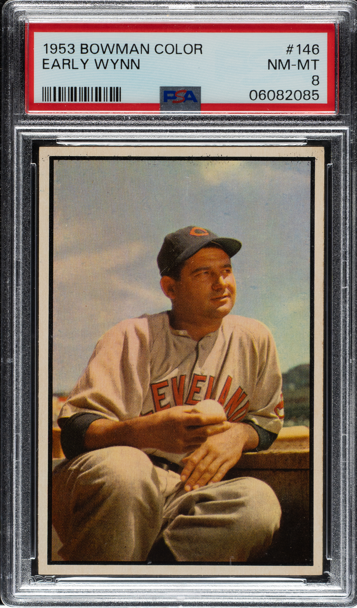 Graded NM-MT 8 by PSA. Cleveland Indians Hall of Famer Early Wynn.