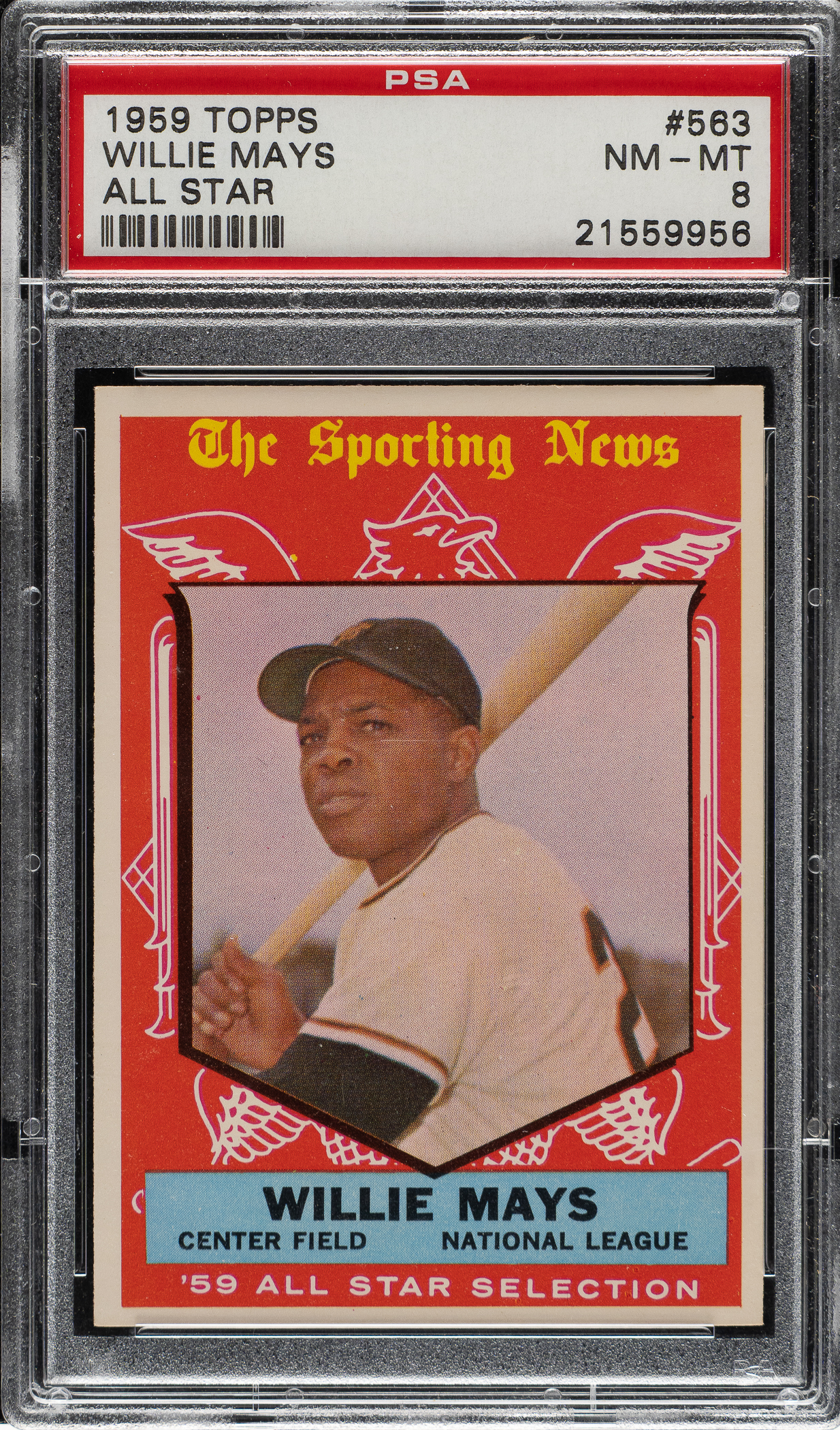 Lot # 1445: 1959 Topps #563 Willie Mays All-Star PSA NM-MT 8