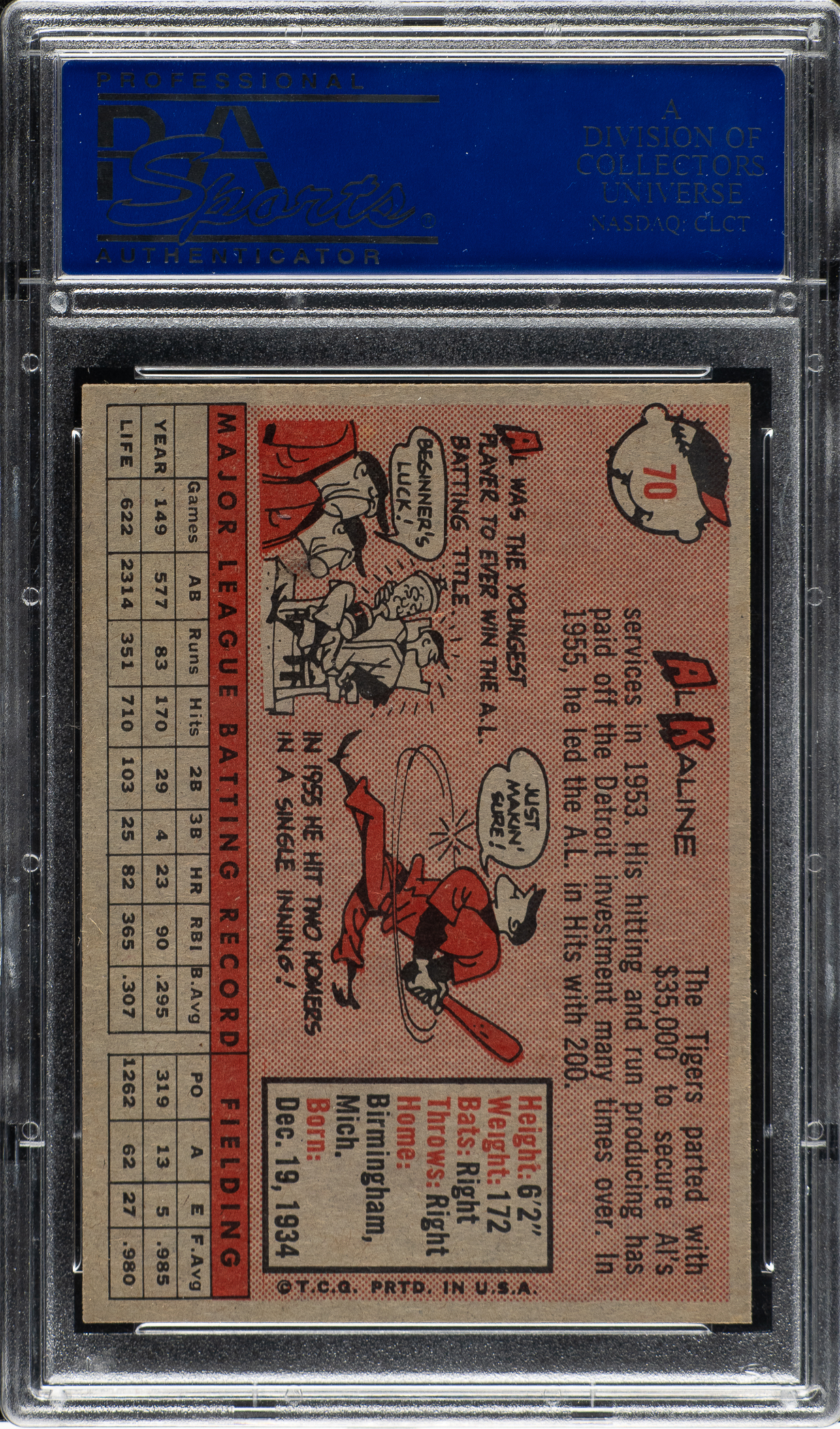 Graded NM-MT 8 by PSA. Detroit Tigers Hall of Famer Al Kaline.
