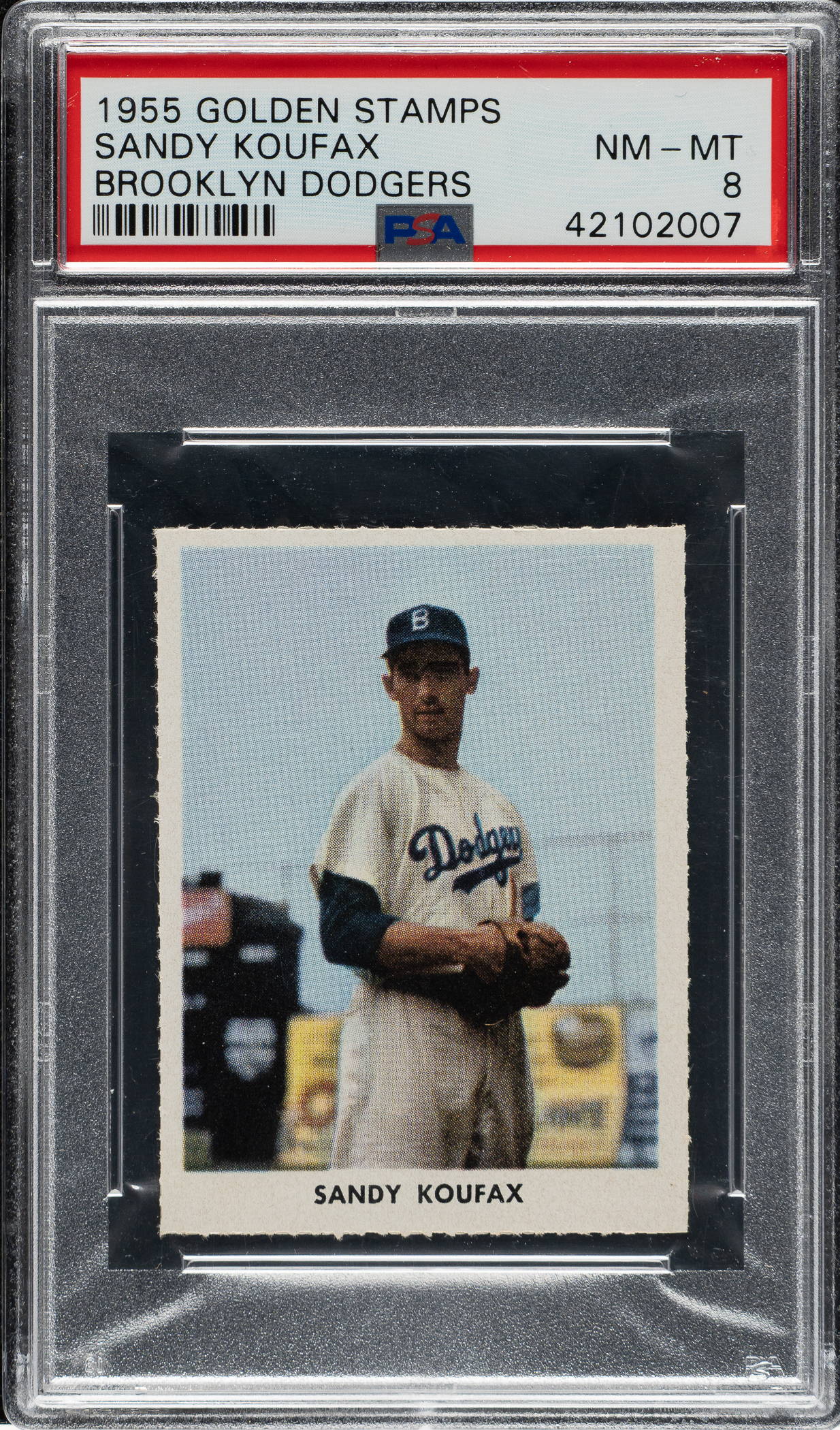 Graded NM-MT 8 by PSA. Brooklyn Dodgers Hall of Famer Sandy Koufax.