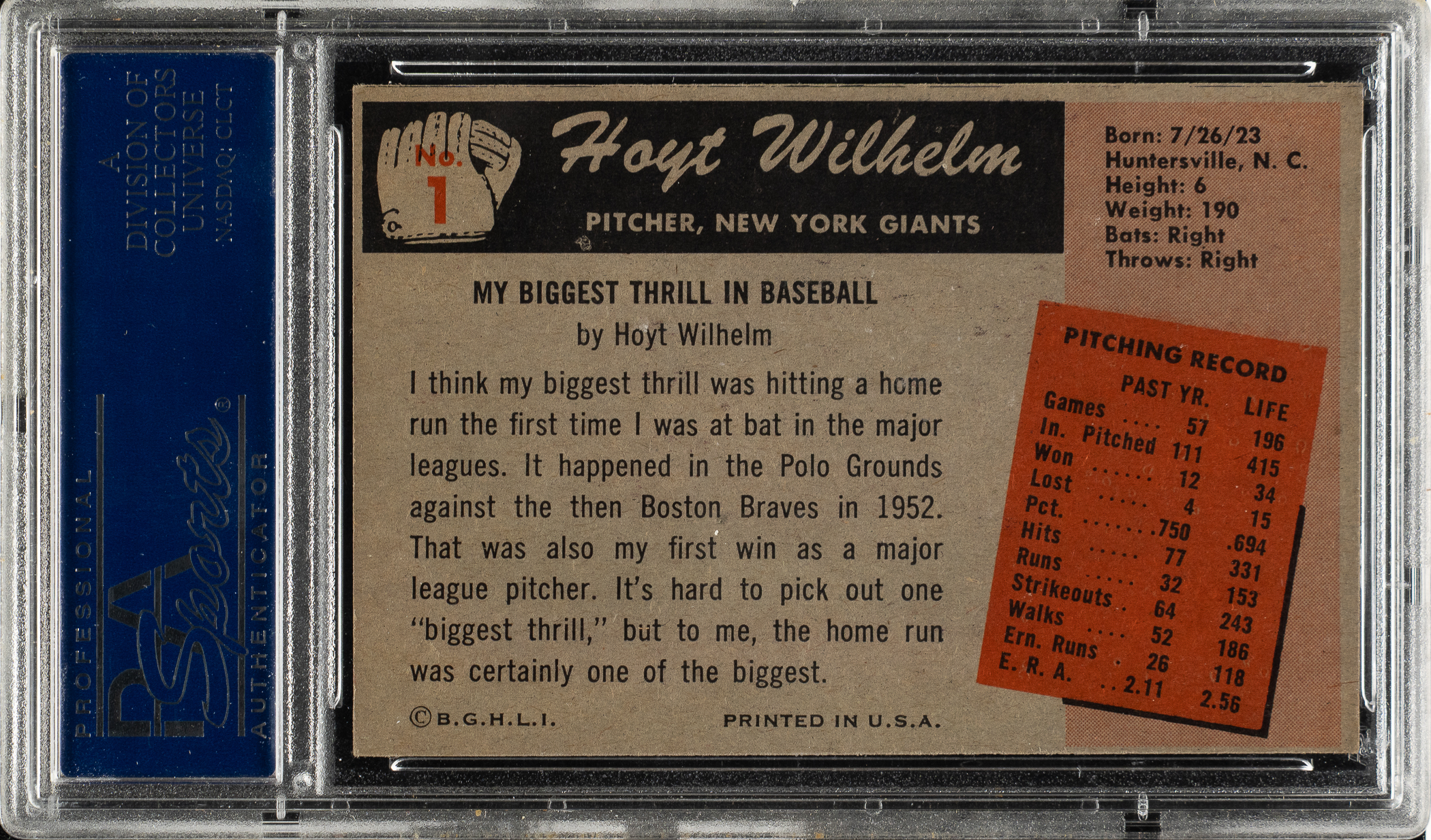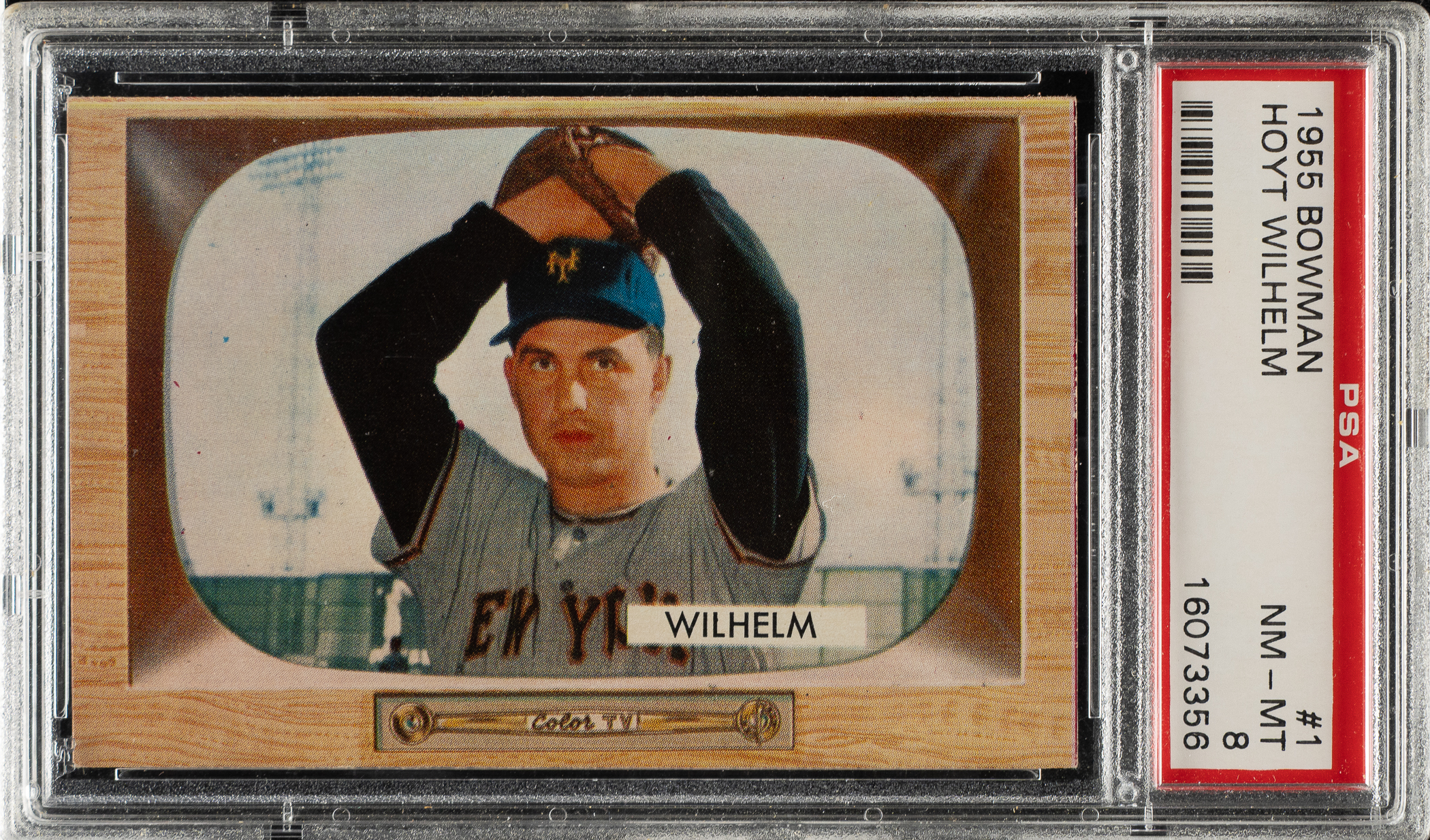 Lot # 1205: 1955 Bowman #1 Hoyt Wilhelm PSA NM-MT 8