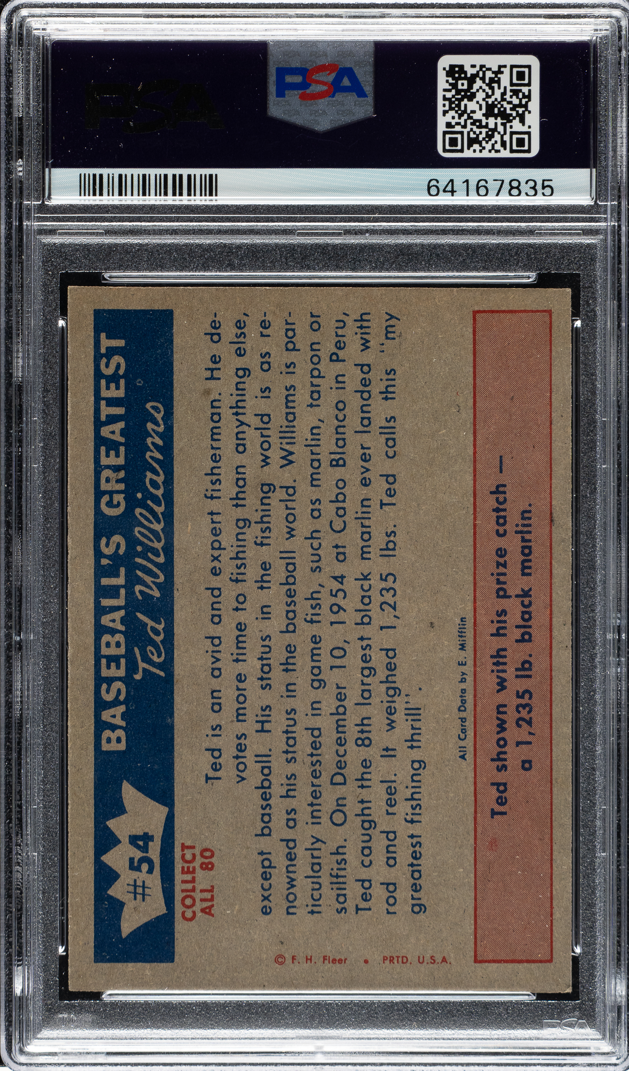 Lot # 1428: 1959 Fleer Ted Williams #54 "Fisherman Ted Hooks A Big One" PSA GEM MINT 10
