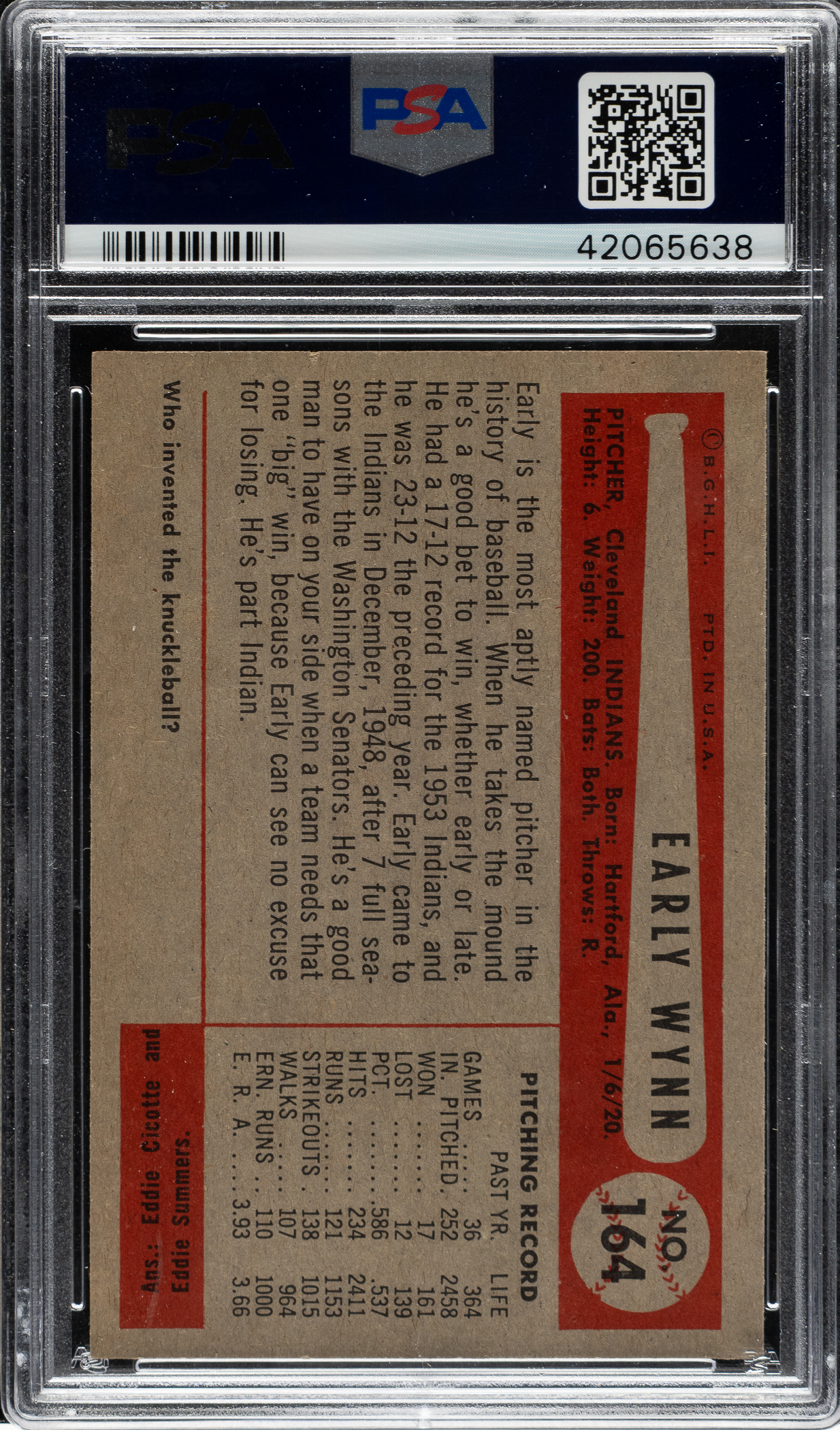 Graded MINT 9 by PSA. Cleveland Indians Hall of Famer Early Wynn. Highest-graded example!
