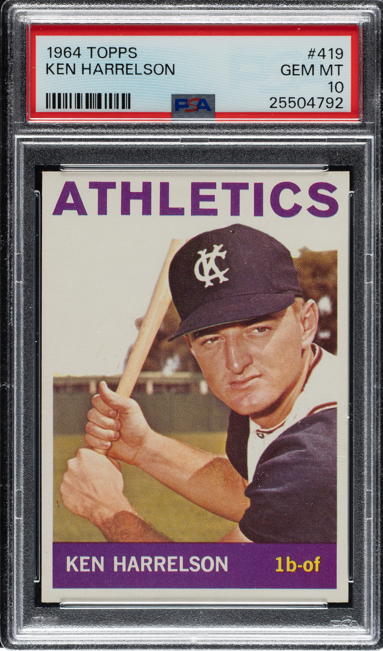 Graded GEM MINT 10 by PSA. Kansas City Athletics. One of only six examples graded at this lofty level.