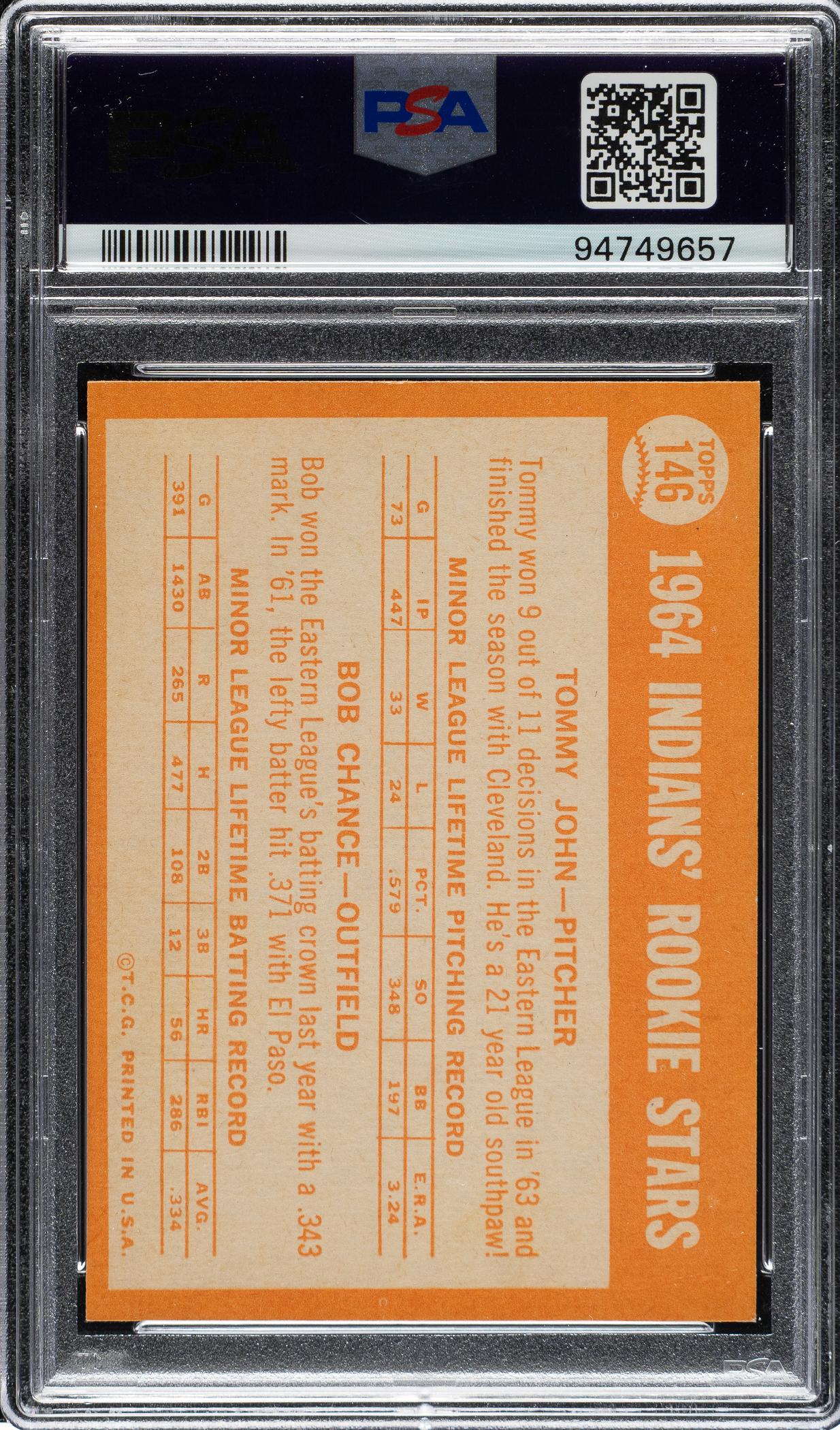 Graded MINT 9 by PSA. Cleveland Indians. Only four examples grade higher out of 2,471 cards evaluated by PSA to date.