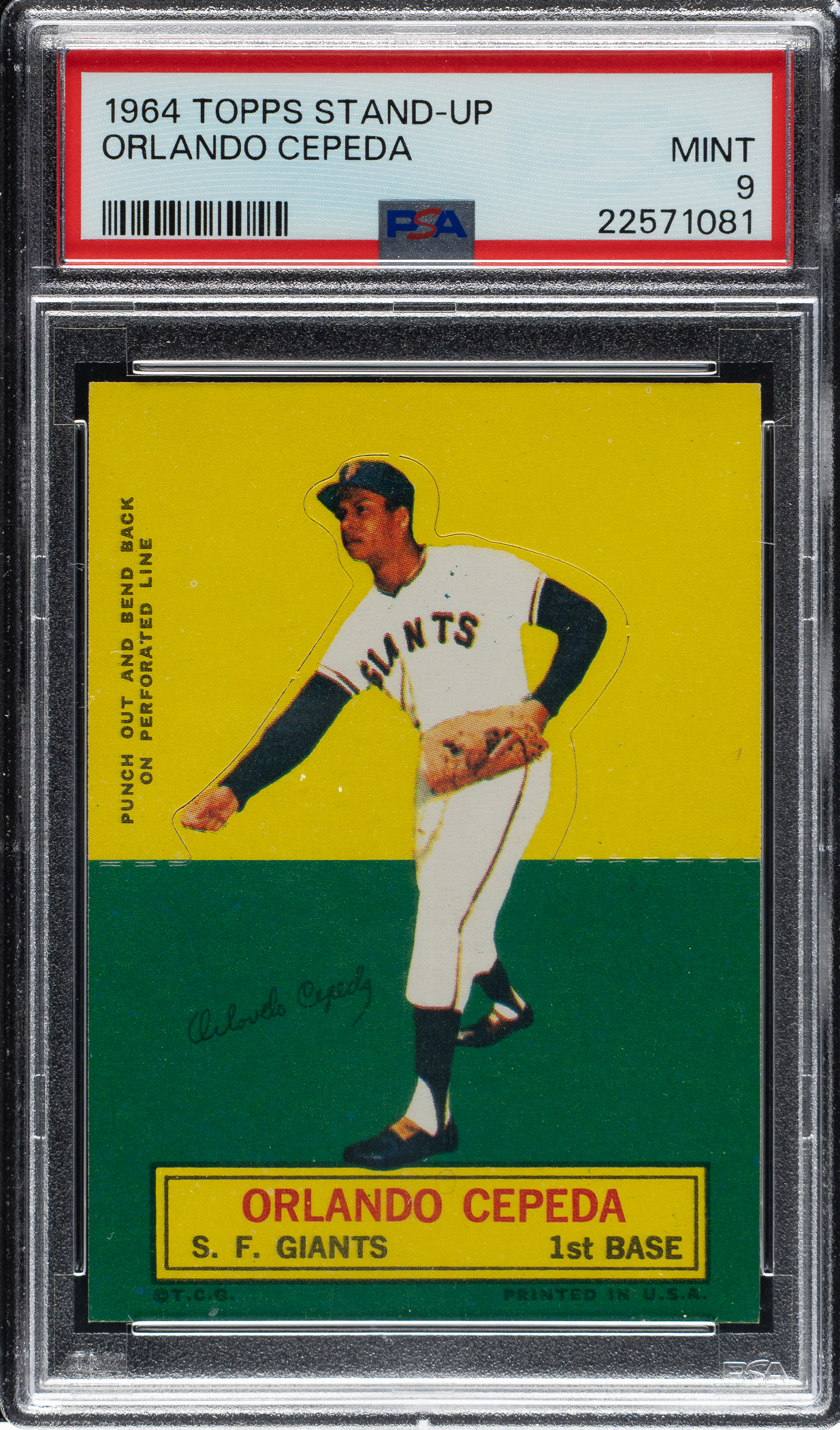 Graded MINT 9 by PSA. San Francisco Giants Hall of Famer Orlando Cepeda. One of only seven examples graded at this level by PSA with none higher!