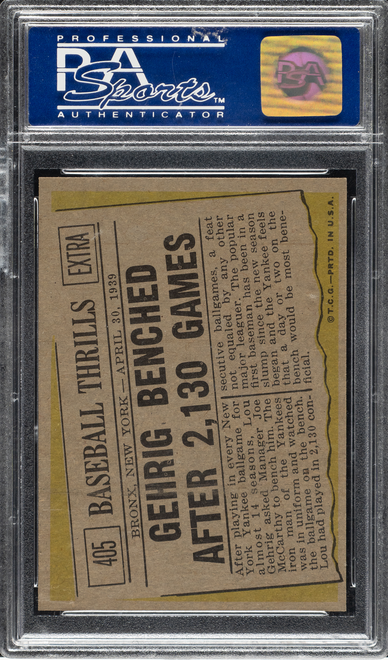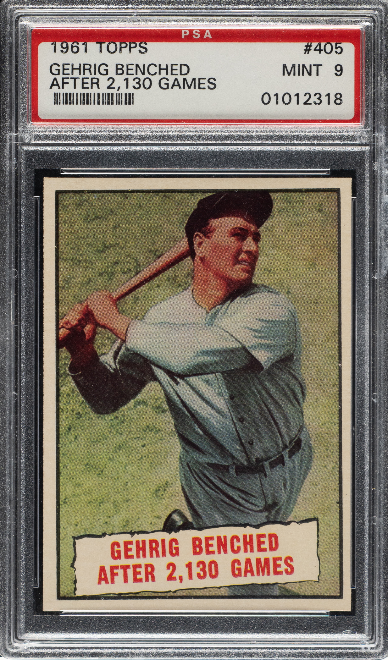 Graded MINT 9 by PSA. New York Yankees Hall of Famer Lou Gehrig. Only three examples graded higher out of 2,154 cards evaluated to date by PSA.