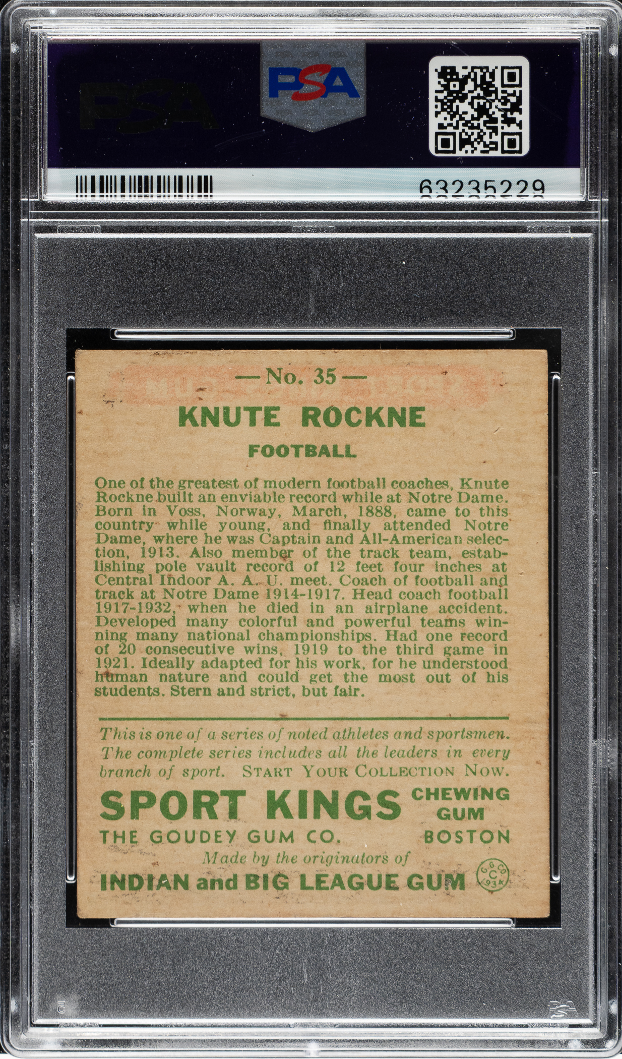 Graded EX 5 by PSA. Legendary Notre Dame football coach Knute Rockne.