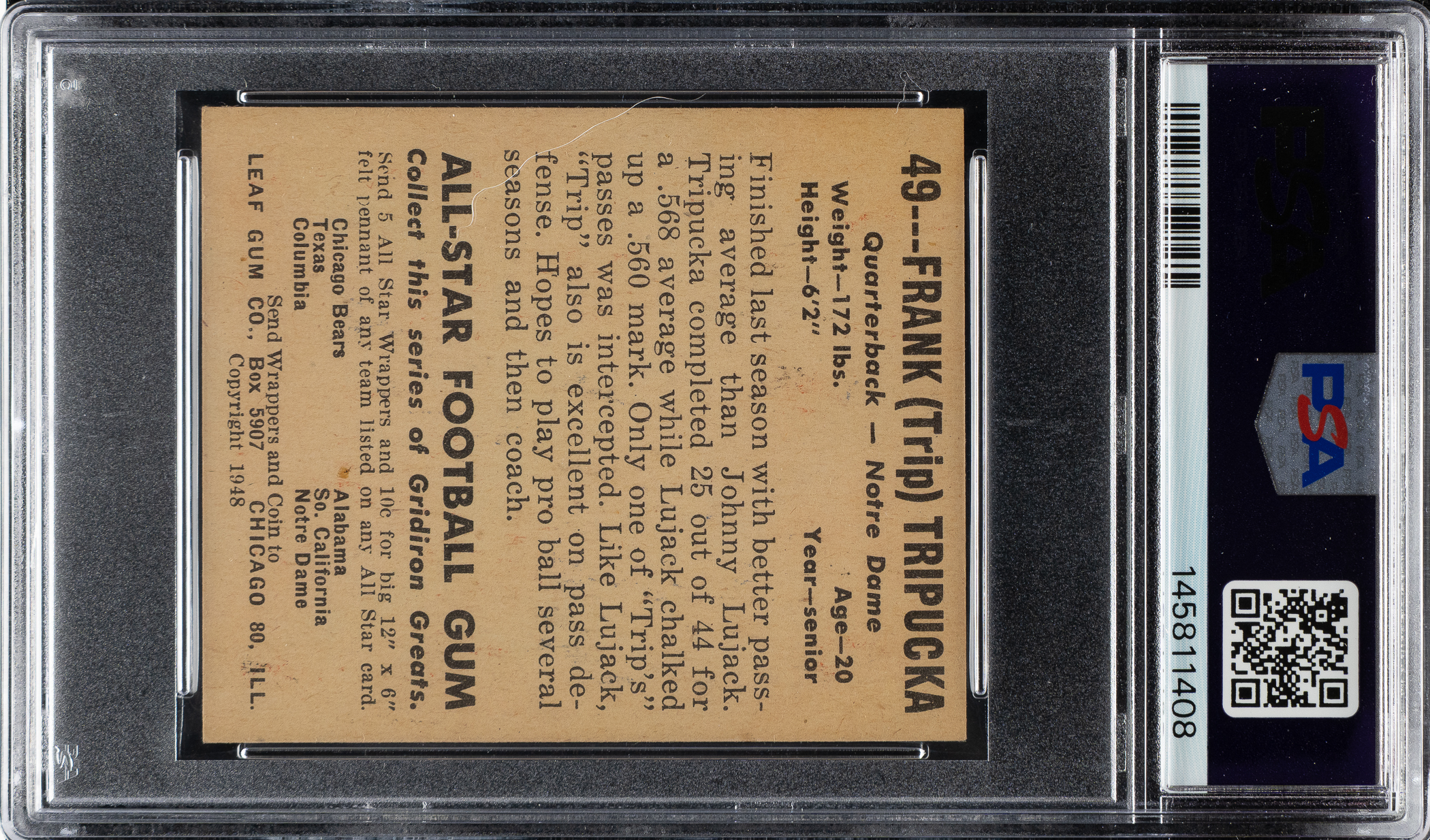 Graded NM-MT 8 by PSA. Notre Dame Fighting Irish. Only one example graded higher by PSA.
