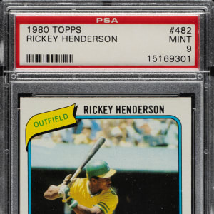 Lot # 1861: 1980 Topps #482 Rickey Henderson Rookie PSA MINT 9