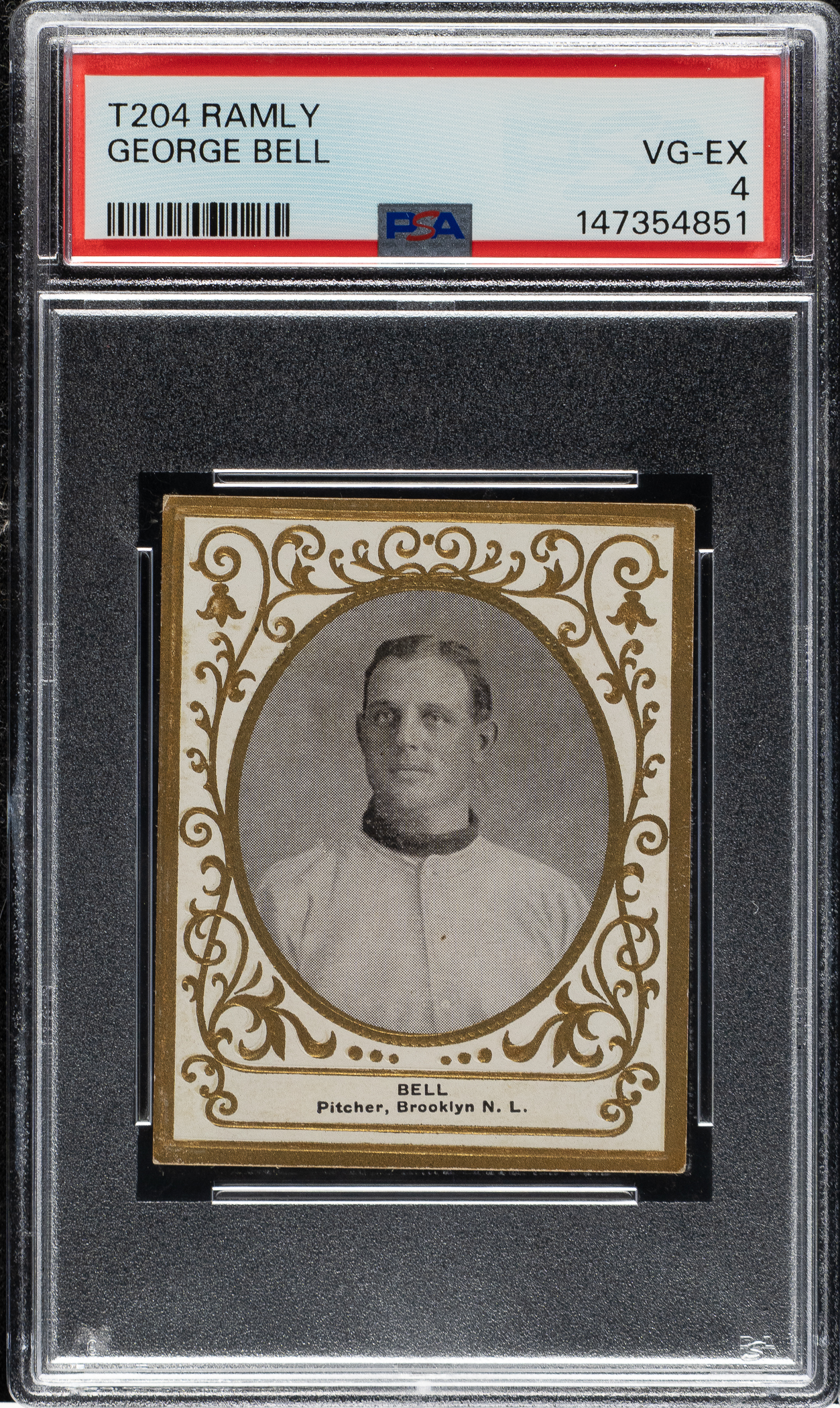 Graded VG-EX 4 by PSA (submitted by REA). Brooklyn Superbas. This card is part of an exciting, fresh-to-the-hobby find of T204 Ramly cards that were saved by the family of the original owner who lived in the New England area, all consigned to REA's Spring 2026 and future auctions.