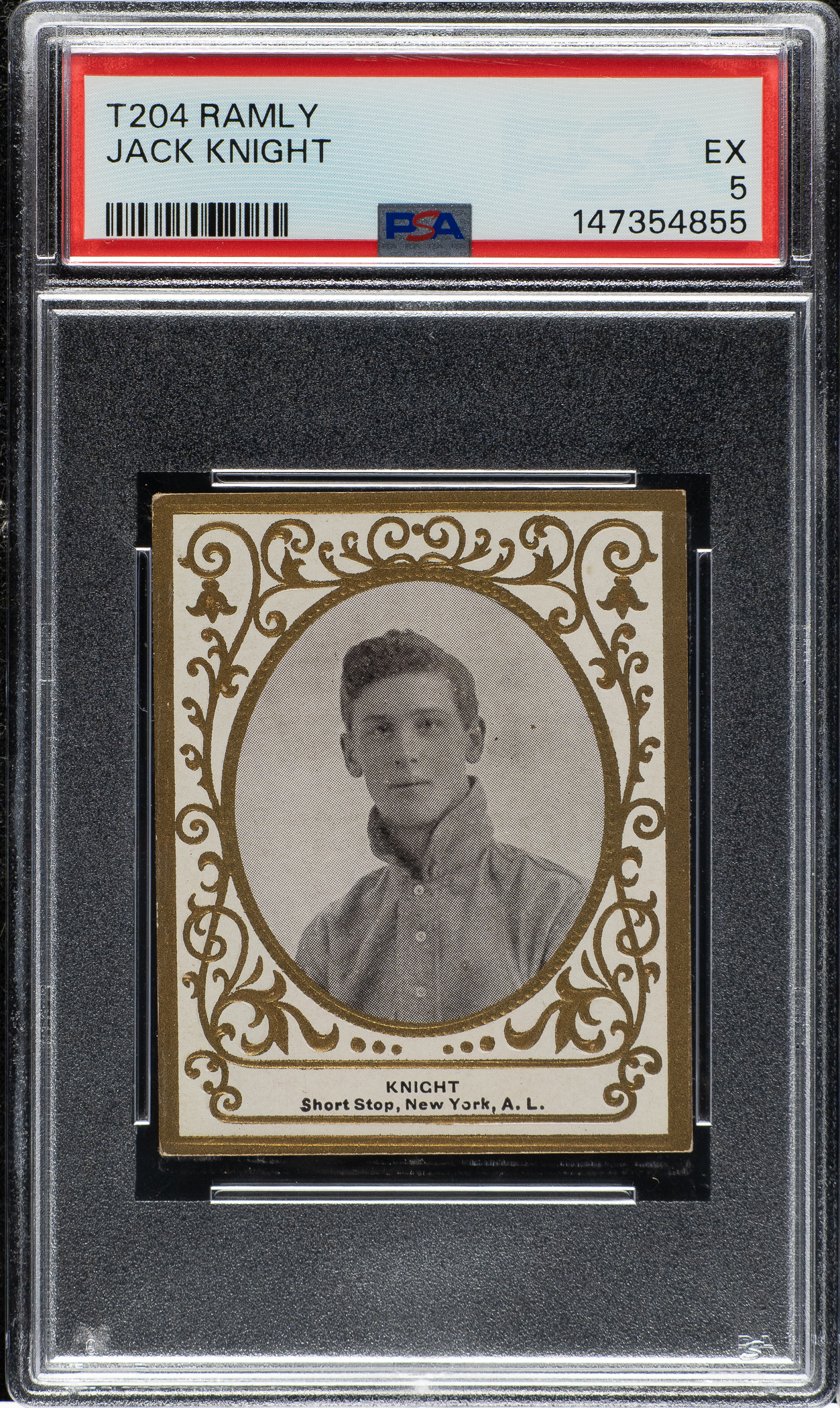 Graded EX 5 by PSA (submitted by REA). New York Highlanders. This card is part of an exciting, fresh-to-the-hobby find of T204 Ramly cards that were saved by the family of the original owner who lived in the New England area, all consigned to REA's Spring 2026 and future auctions.