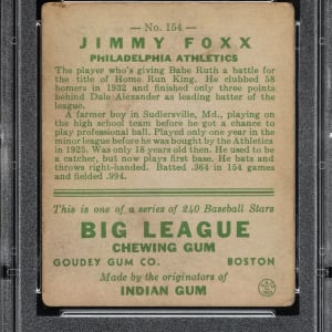 Graded VG-EX 4 by PSA. Philadelphia Athletics Hall of Famer Jimmy Foxx.