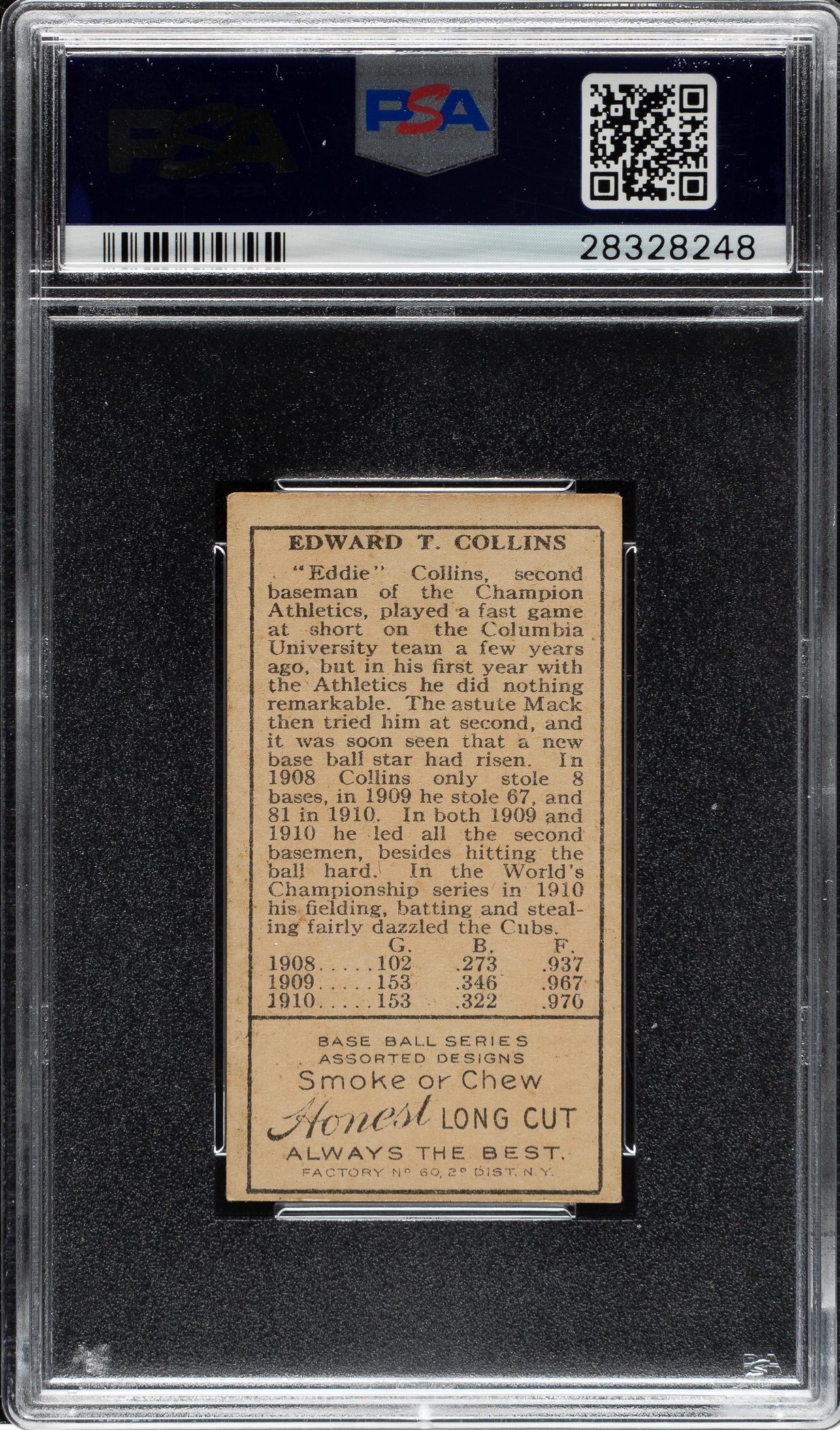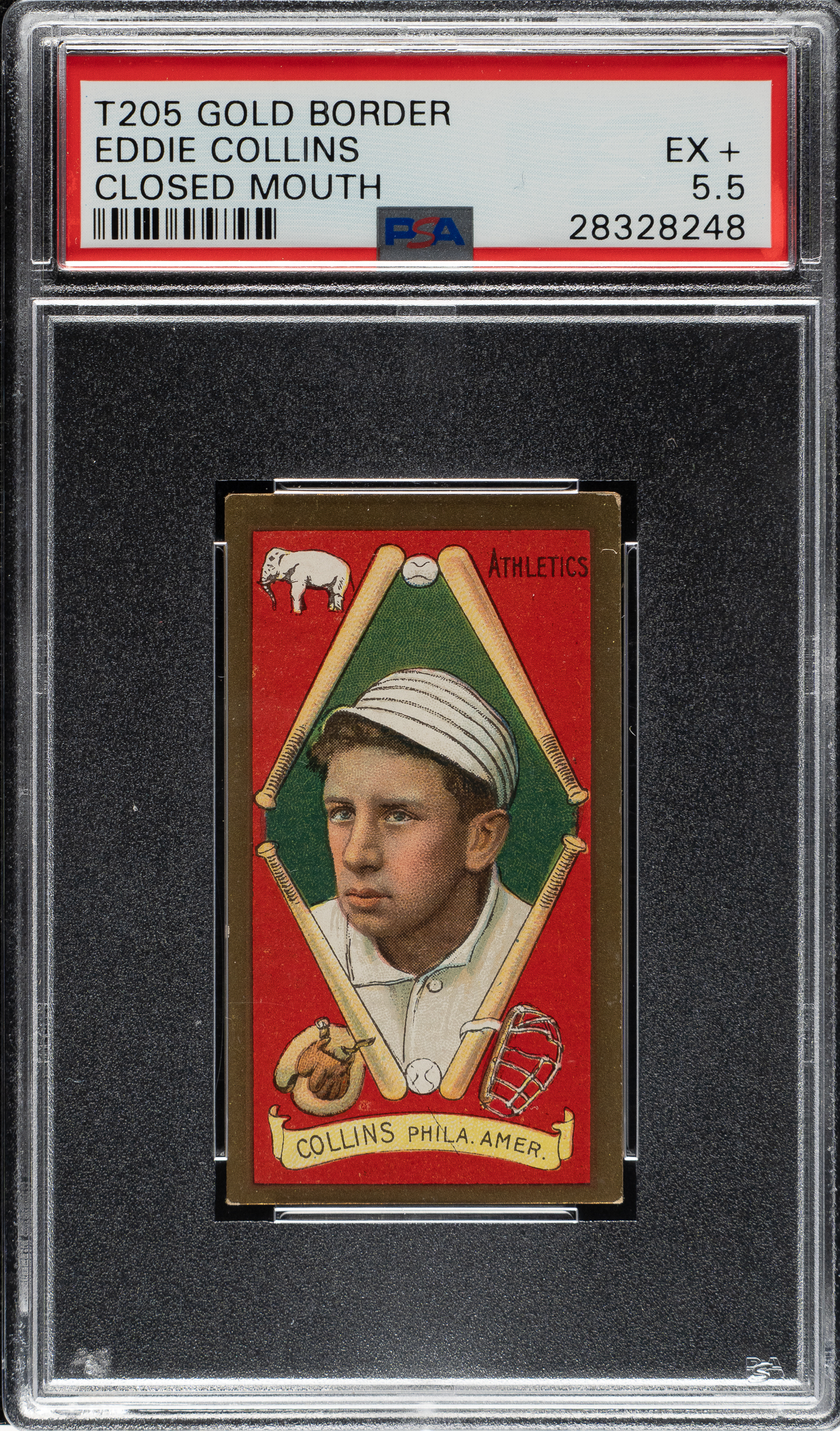Graded EX+ 5.5 by PSA. Mouth closed variation. Philadelphia Athletics Hall of Famer Eddie Collins.
