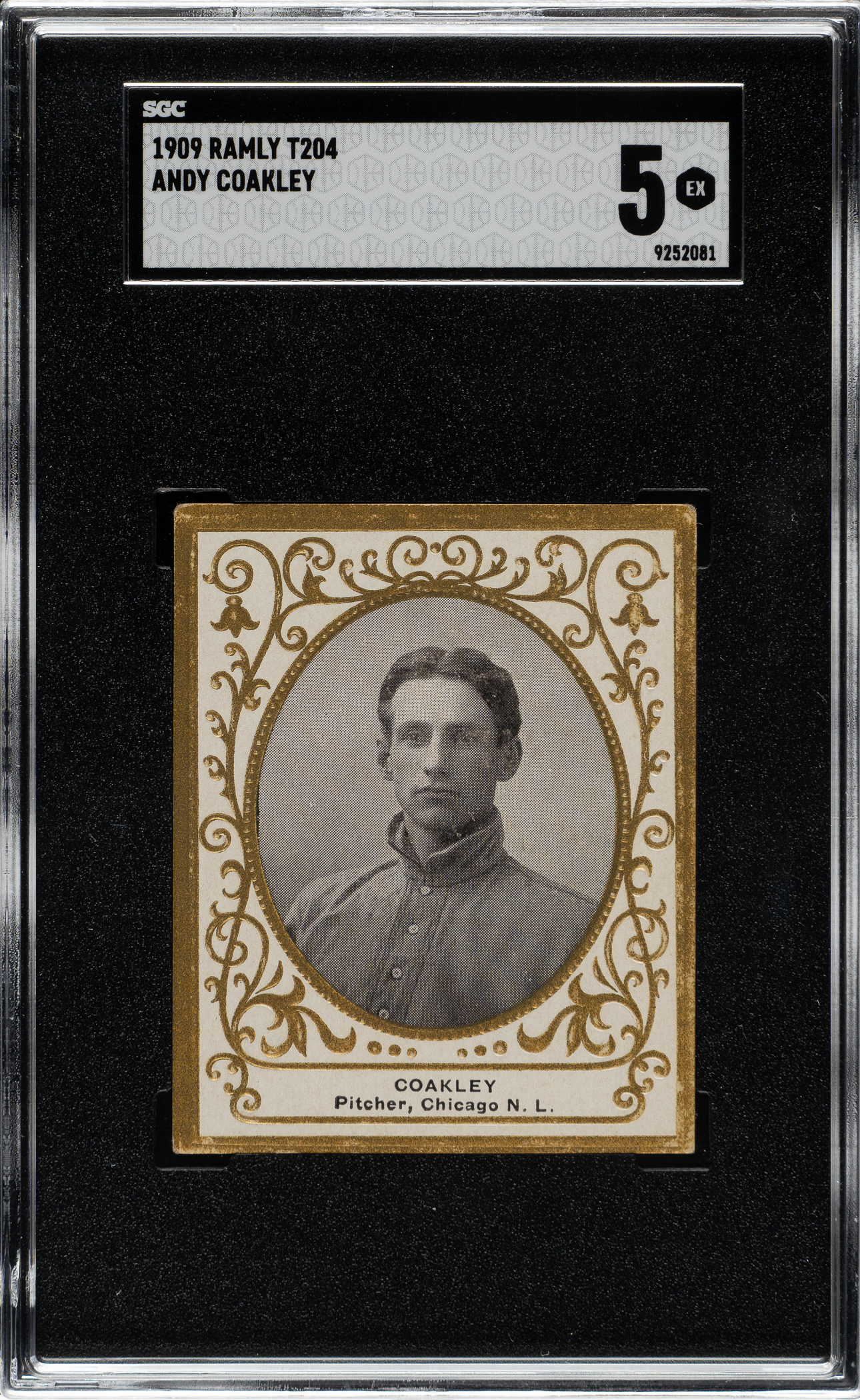 Graded EX 5 by SGC (submitted by REA). Chicago Cubs. This card is part of an exciting, fresh-to-the-hobby find of T204 Ramly cards that were saved by the family of the original owner who lived in the New England area, all consigned to REA's Spring 2026 and future auctions.