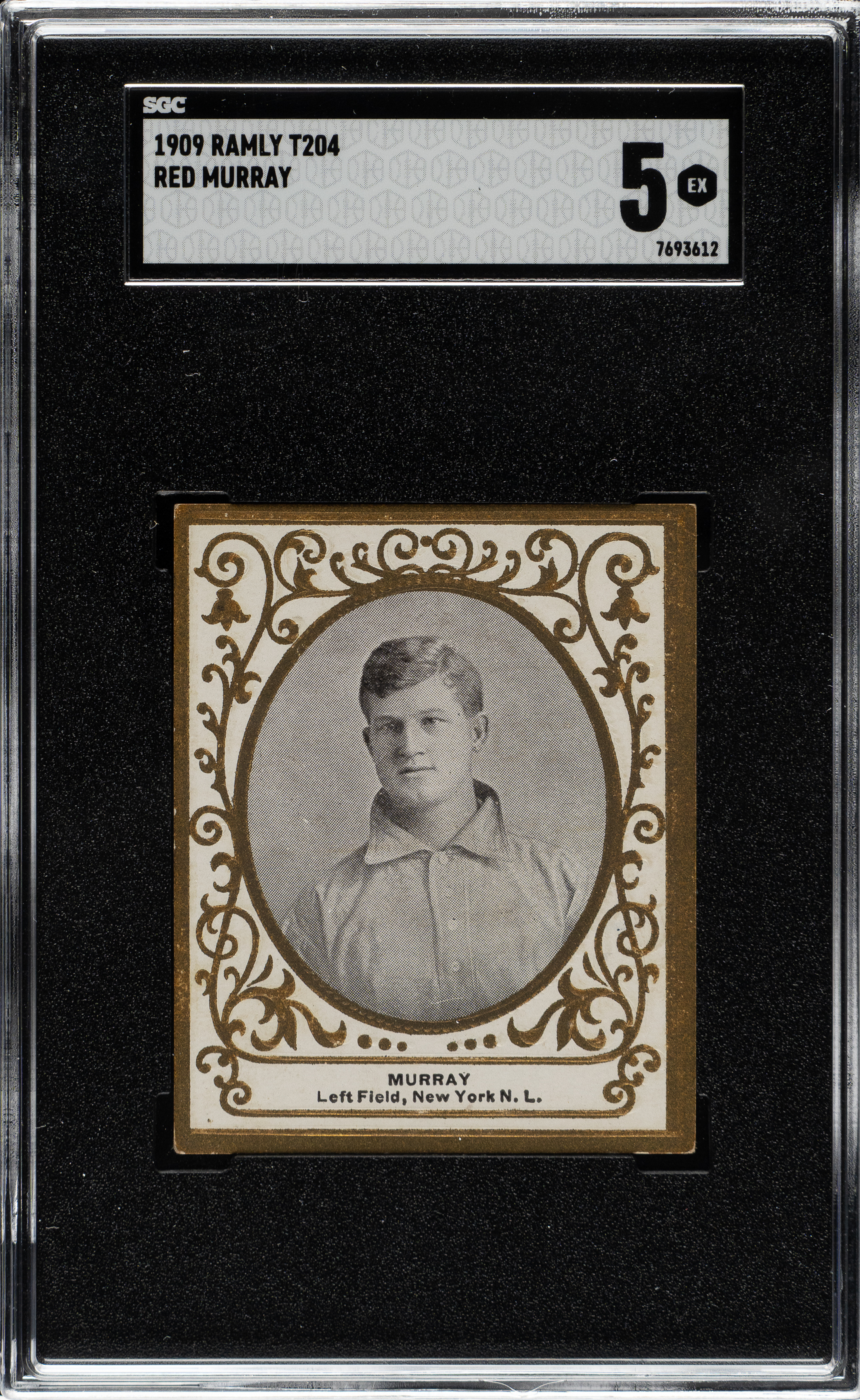 Graded EX 5 by SGC(submitted by REA). New York Giants. This card is part of an exciting, fresh-to-the-hobby find of T204 Ramly cards that were saved by the family of the original owner who lived in the New England area, all consigned to REA's Spring 2026 and future auctions.