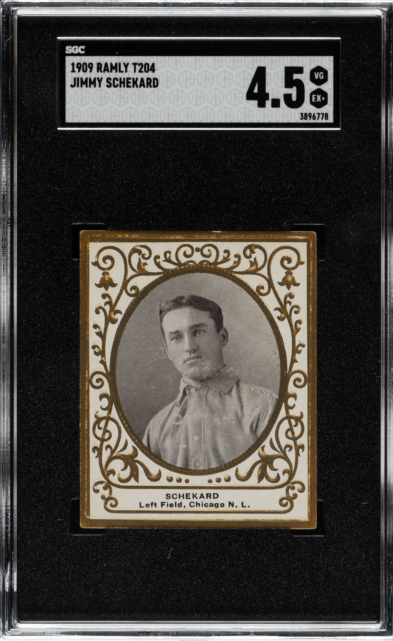 Graded VG/EX+ 4.5 by SGC (submitted by REA). Chicago Cubs. This card is part of an exciting, fresh-to-the-hobby find of T204 Ramly cards that were saved by the family of the original owner who lived in the New England area, all consigned to REA's Spring 2026 and future auctions.