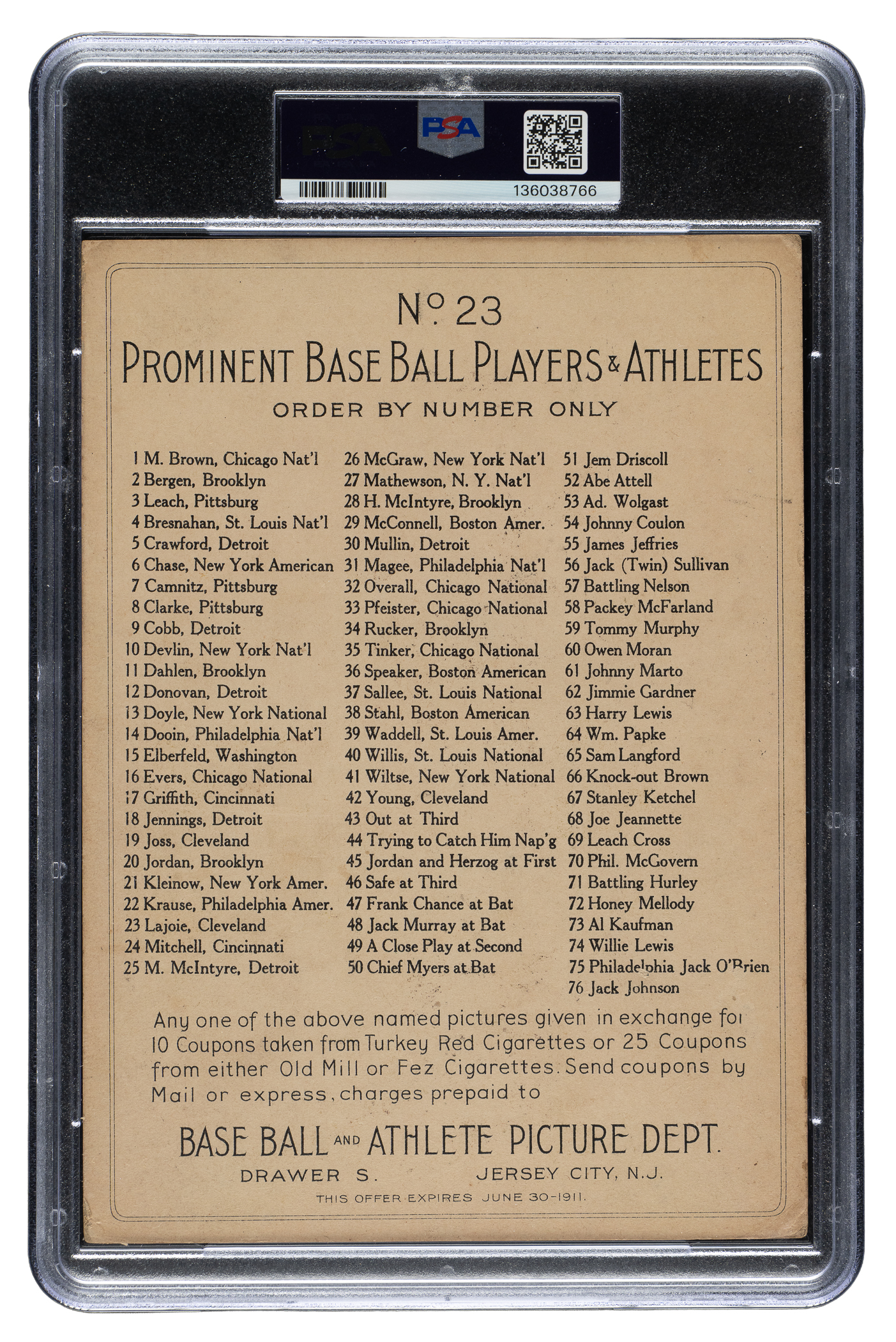 Graded GOOD 2 by PSA. Cleveland Naps Hall of Famer Nap Lajoie.