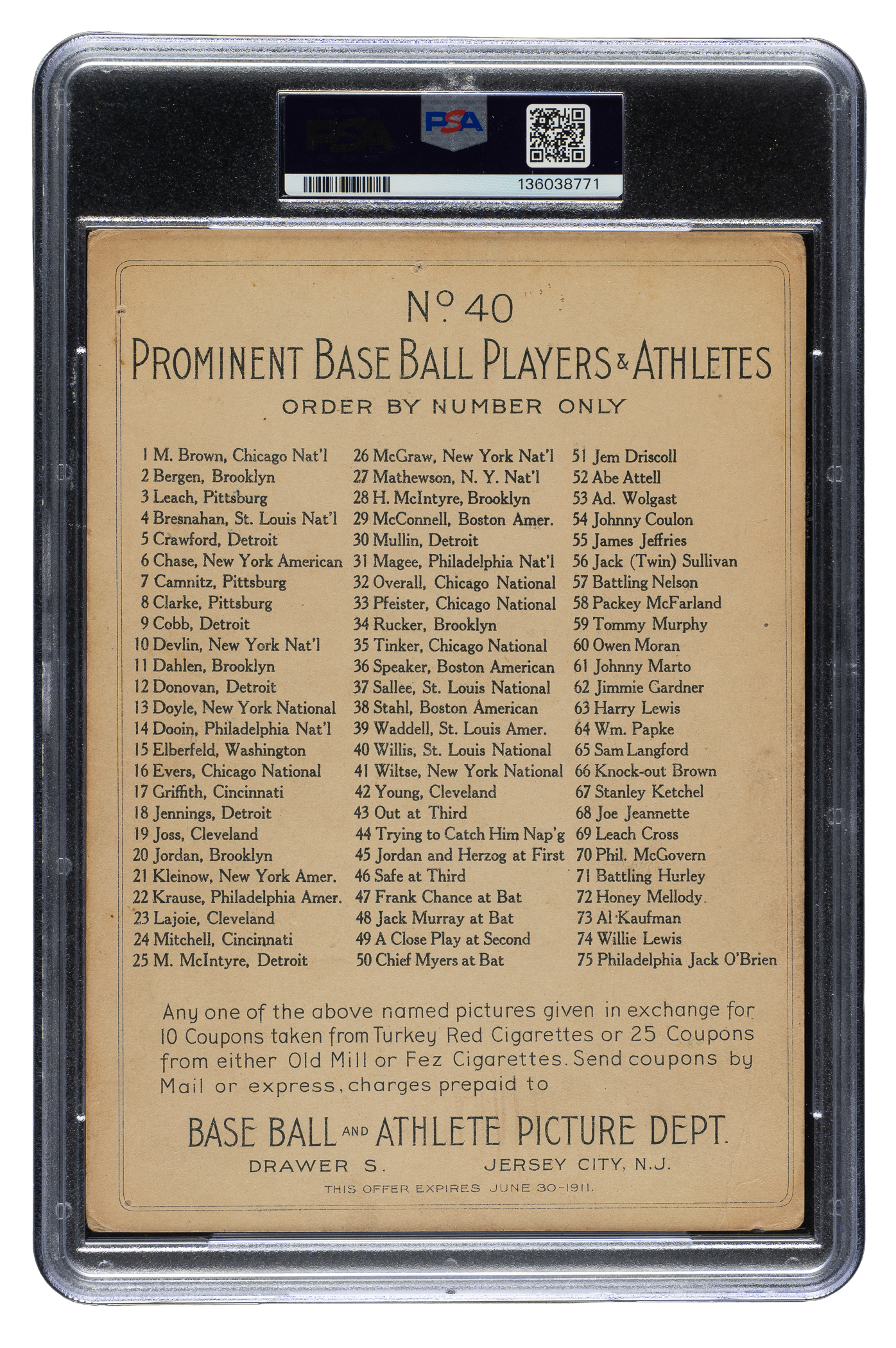 Graded POOR 1 by PSA. Pittsburgh Pirates/St. Louis Cardinals Hall of Famer Vic Willis.