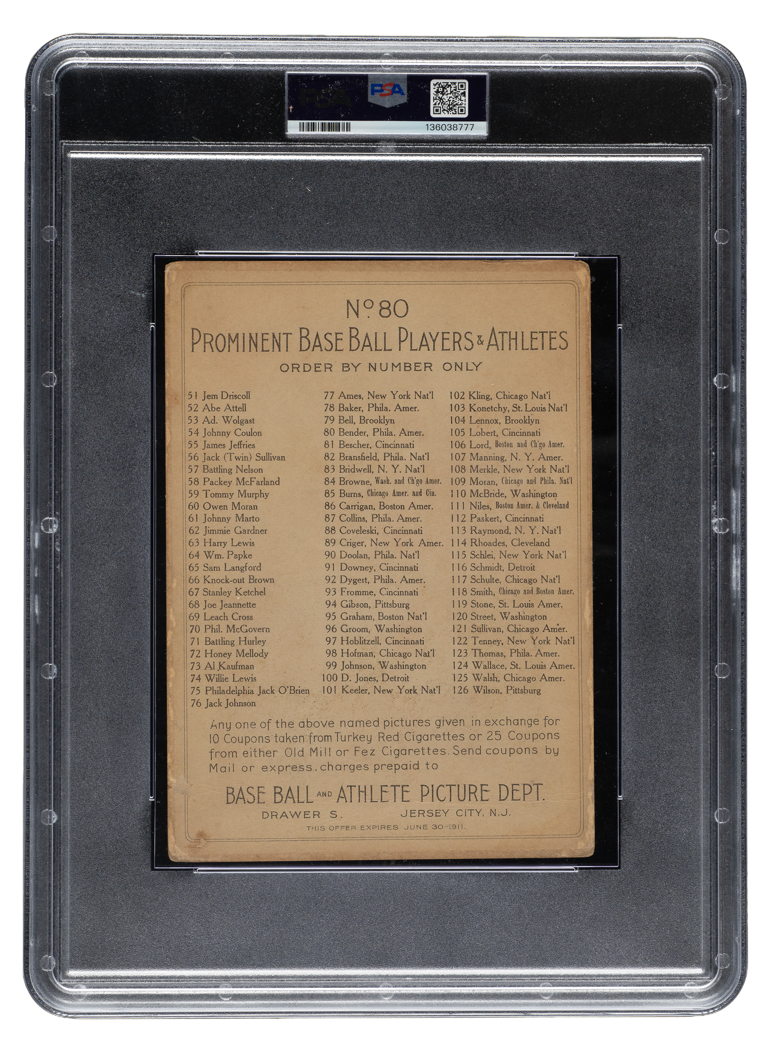 Graded FAIR 1.5 by PSA. Philadelphia Athletics Hall of Famer Chief Bender.
