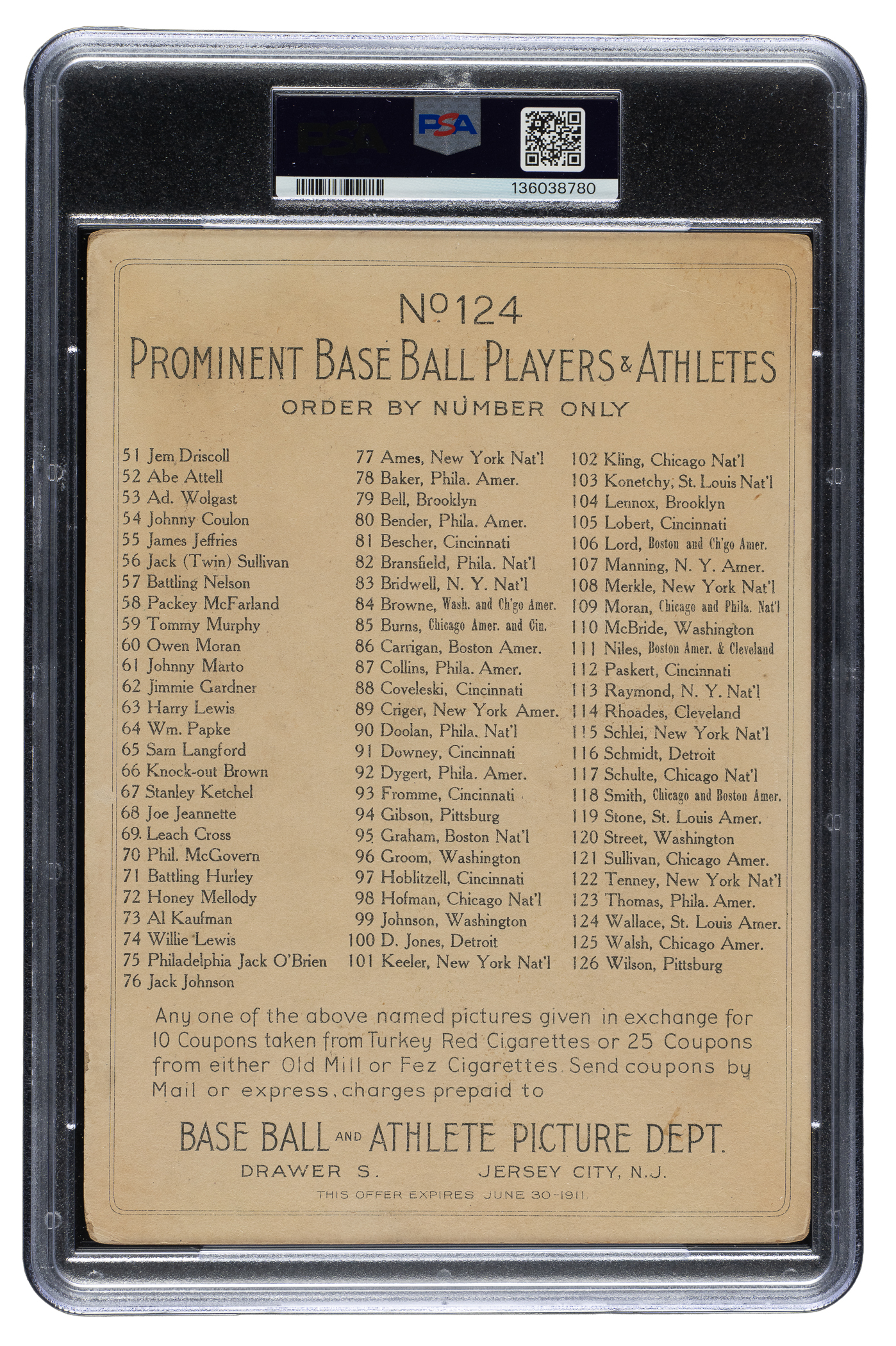 Graded FAIR 1.5 by PSA. St. Louis Browns Hall of Famer Bobby Wallace.