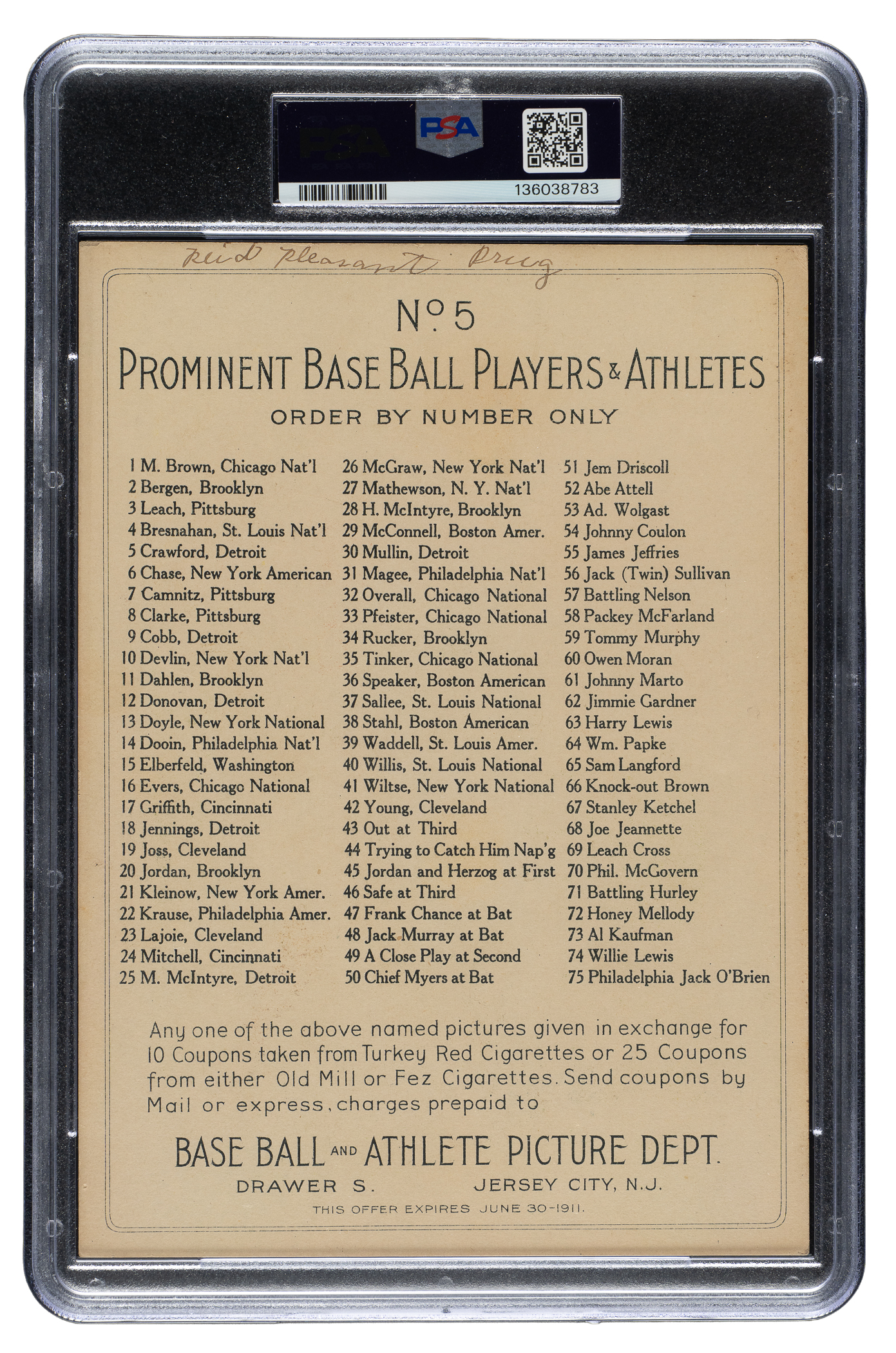 Graded VG 3 (MK) by PSA. Detroit Tigers Hall of Famer Sam Crawford.
