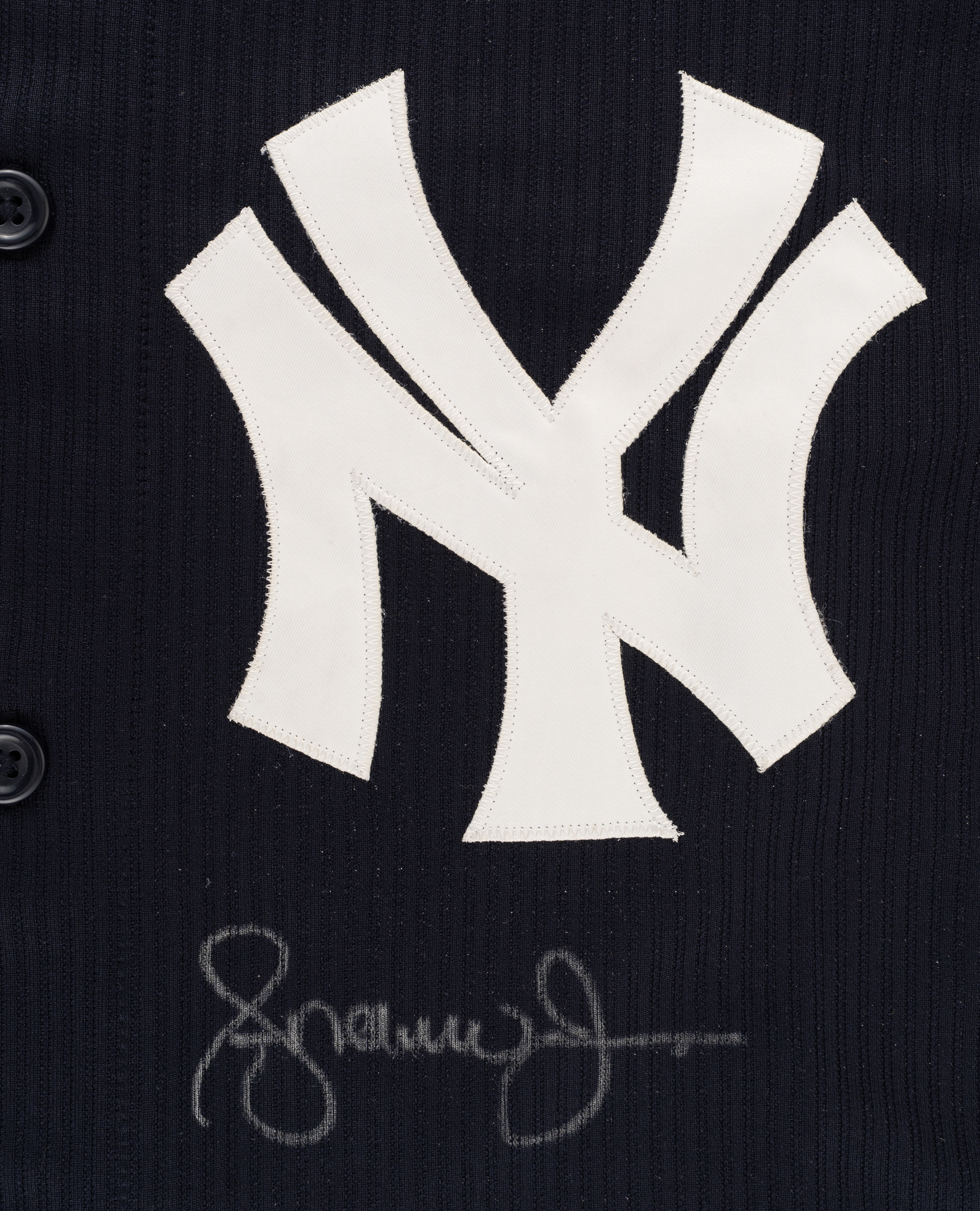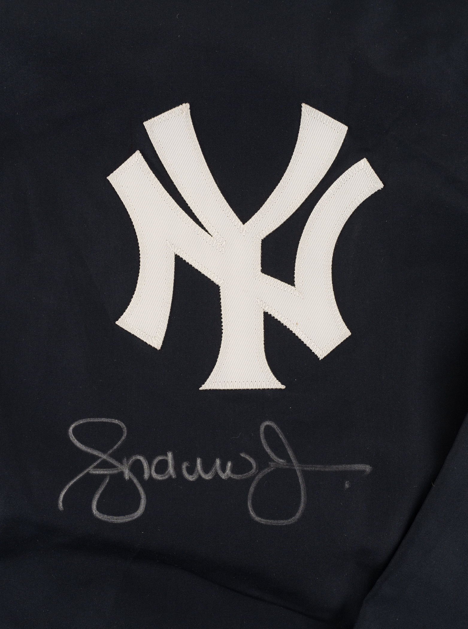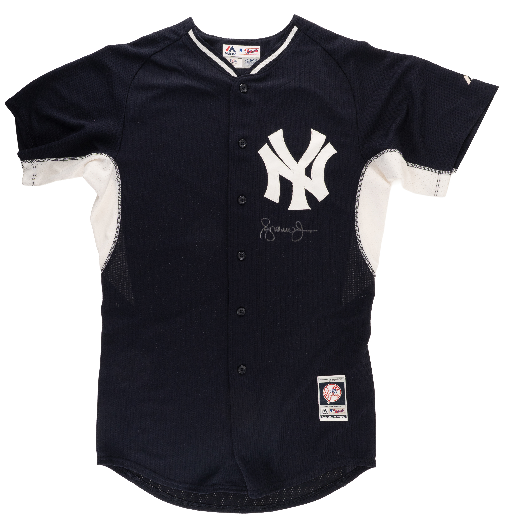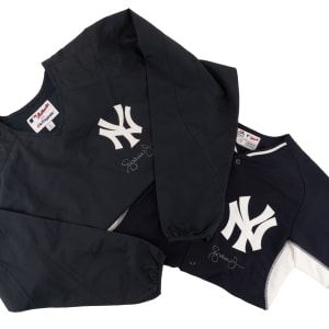 New York Yankees batting practice jersey and windbreaker worn by Hall of Fame outfielder Andruw Jones during his tenure with the team in 2011-2012. Jones has signed each of the Majestic garments on the front in silver paint pen. Pre-certified by PSA/DNA. Total: 2 garments.
