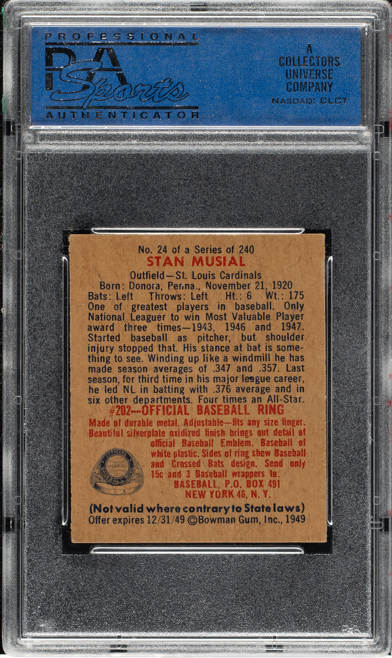 Graded EX-MT 6 by PSA. St. Louis Cardinals Hall of Famer Stan Musial.