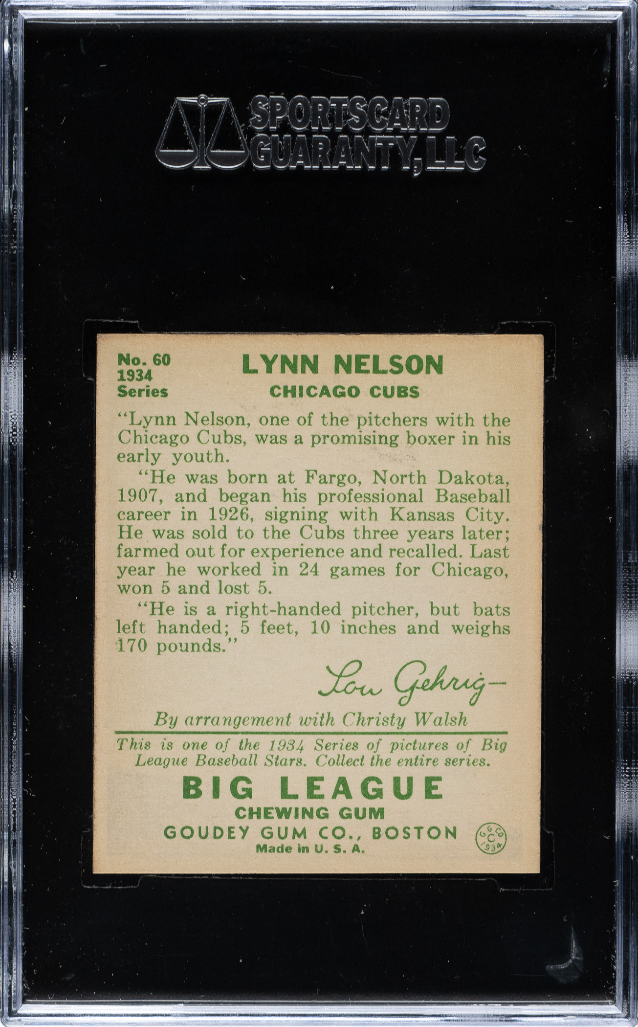 Graded NM/MT 88 by SGC. Chicago Cubs. One of five examples graded at this level with none higher!