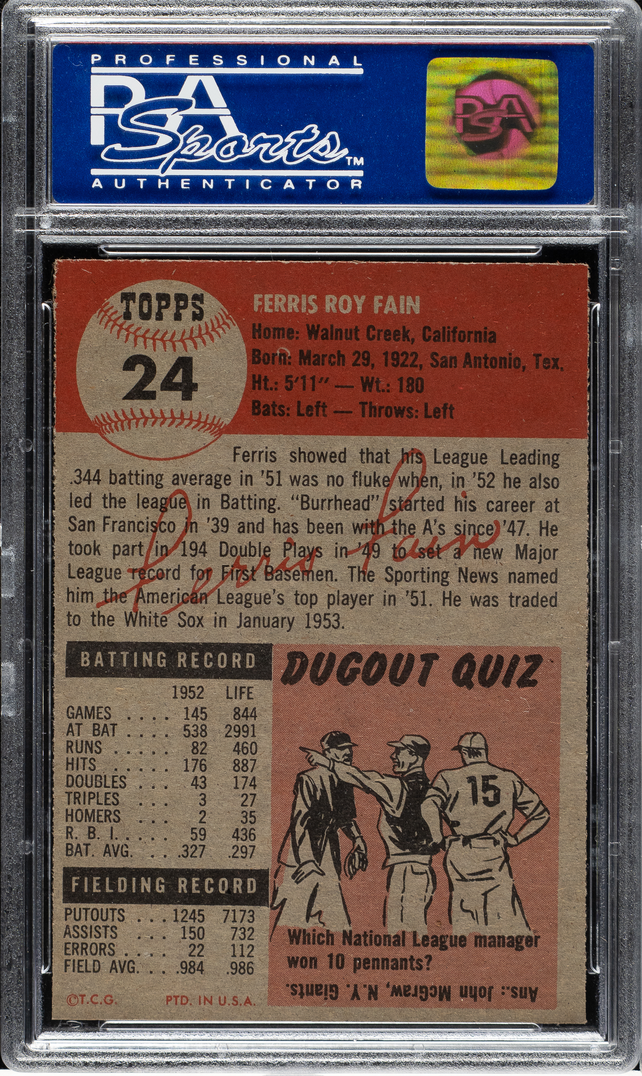 Graded MINT 9 by PSA. Philadelphia Athletics. One of five examples graded at this level by PSA with none higher!