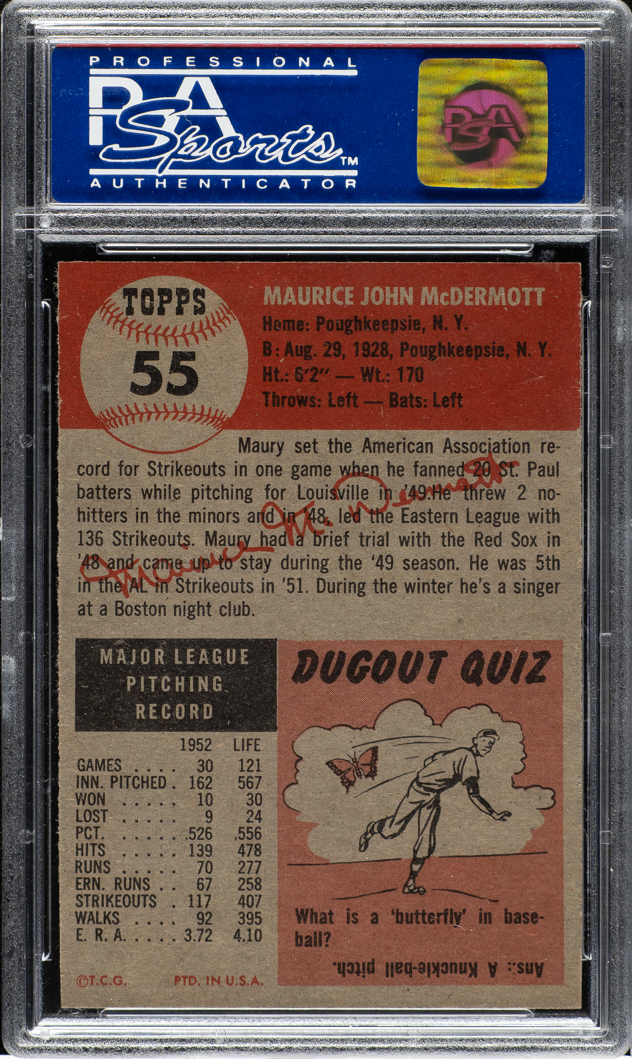 Graded MINT 9 by PSA. Boston Red Sox. One of five examples graded at this level by PSA with none higher!