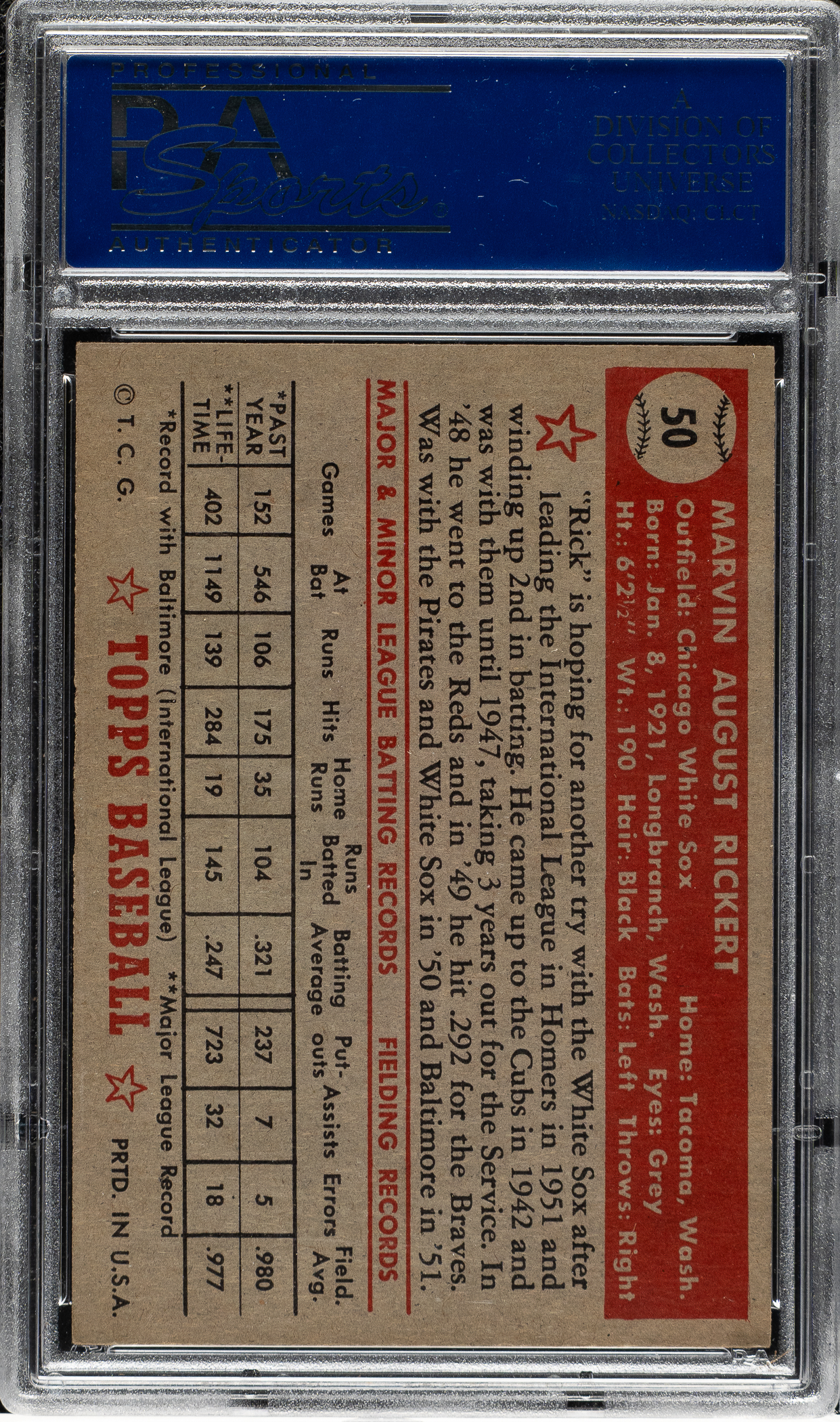 Graded NM-MT 8 by PSA. Chicago White Sox.