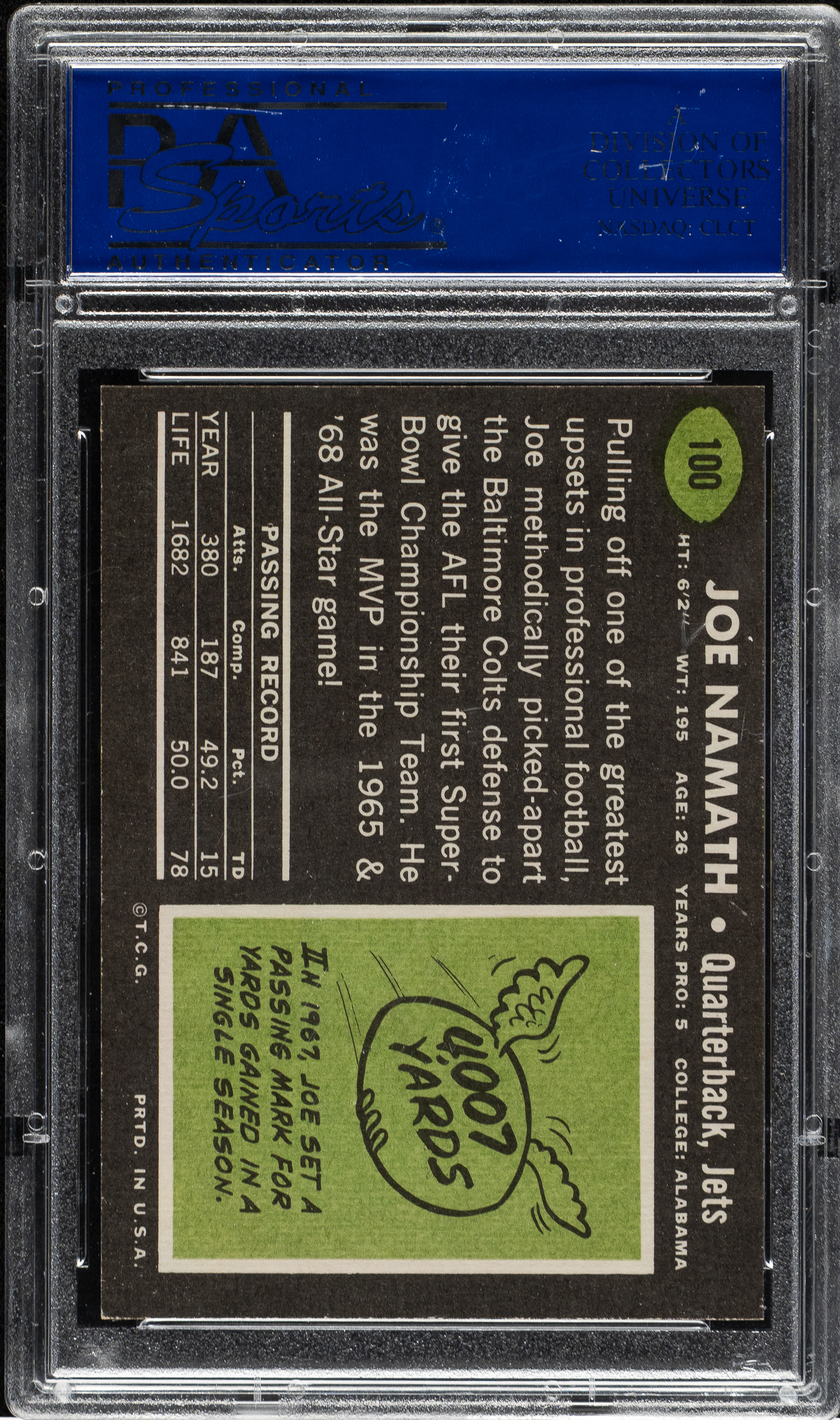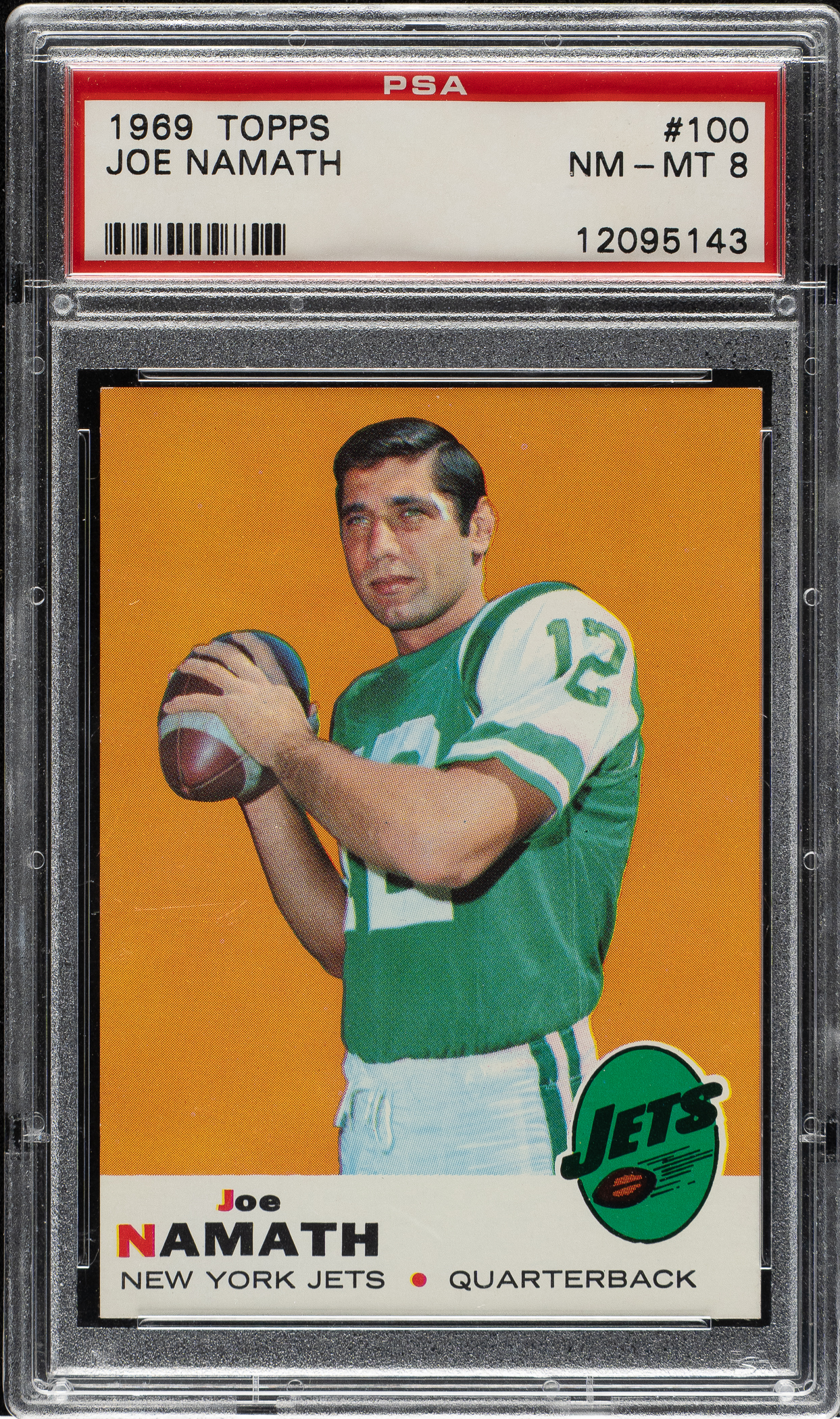 Graded NM-MT 8 by PSA. New York Jets Hall of Famer Joe Namath.