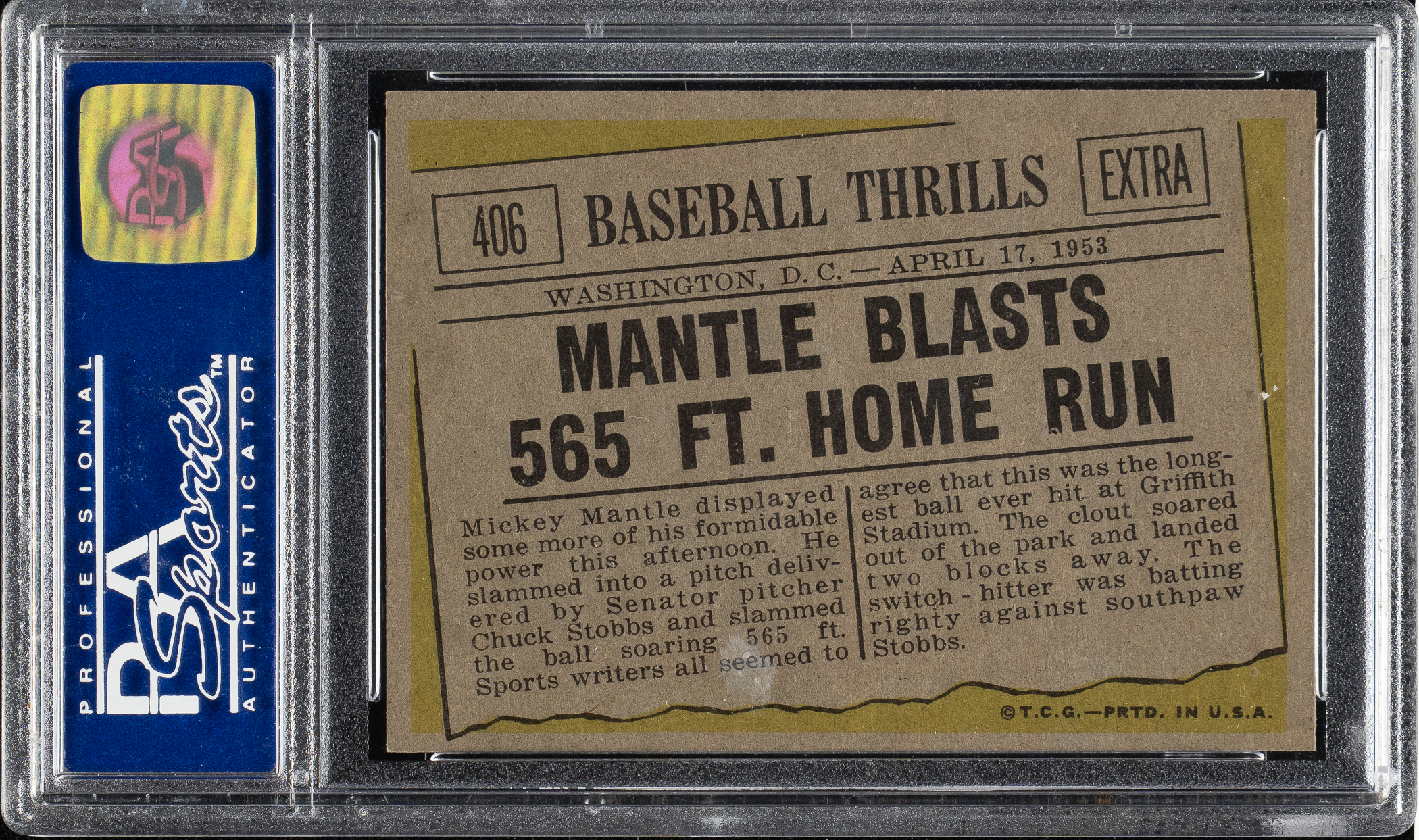 Graded MINT 9 by PSA. New York Yankees Hall of Famer Mickey Mantle.