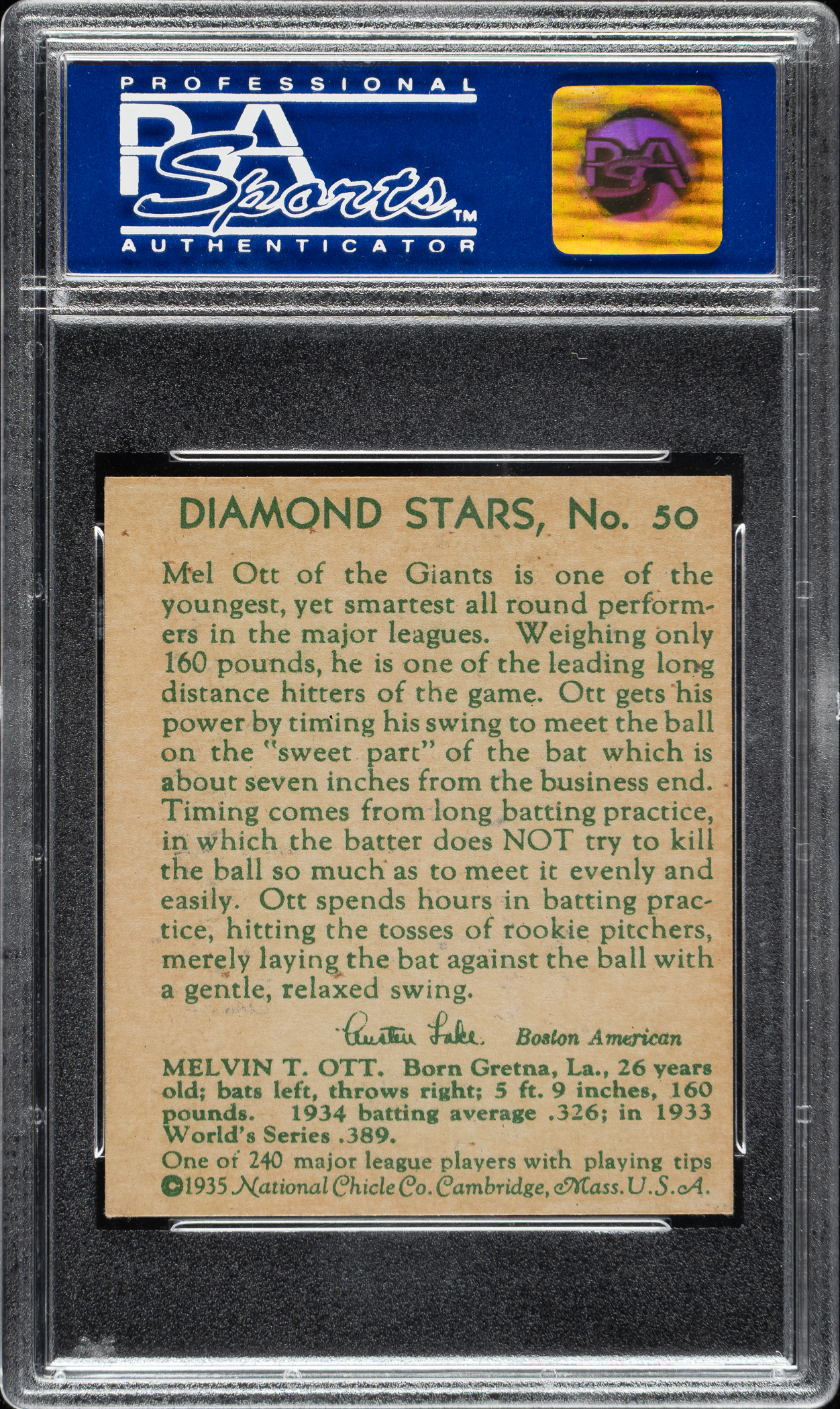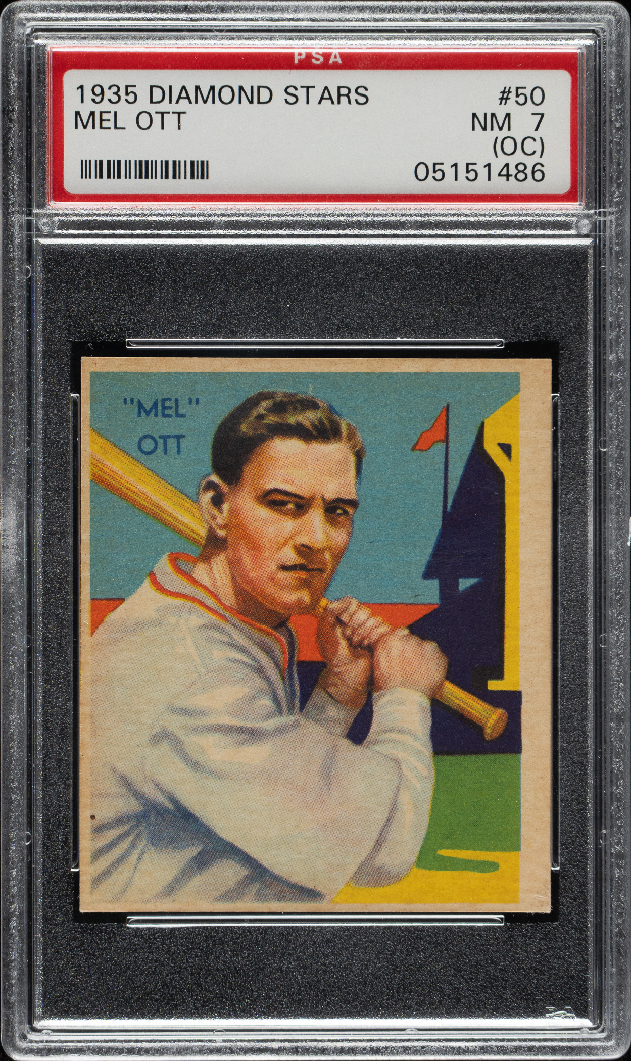 Graded NM 7 (OC) by PSA. New York Giants Hall of Famer Mel Ott.