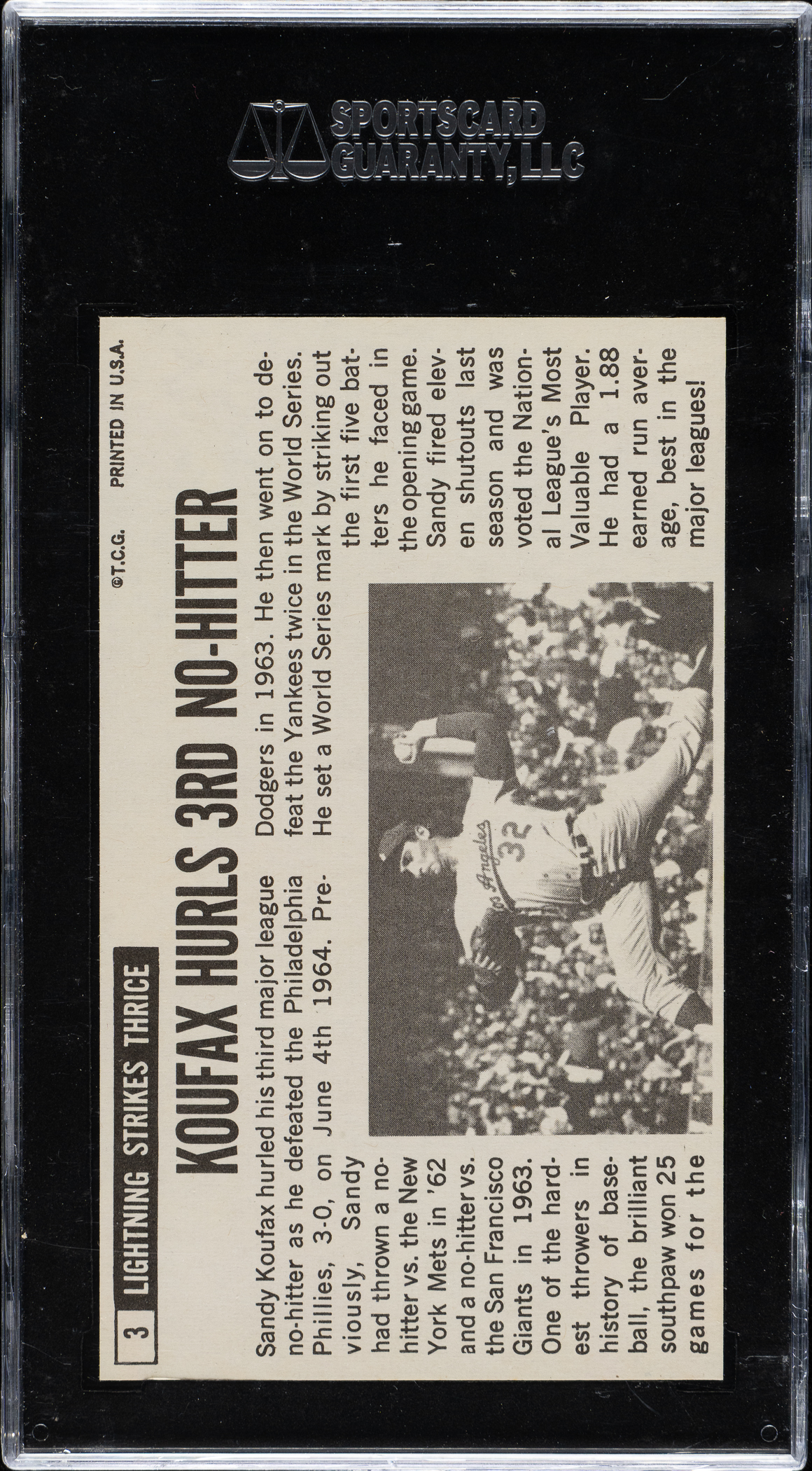 Graded NM/MT+ 92 by SGC. Los Angeles Dodgers Hall of Famer Sandy Koufax.