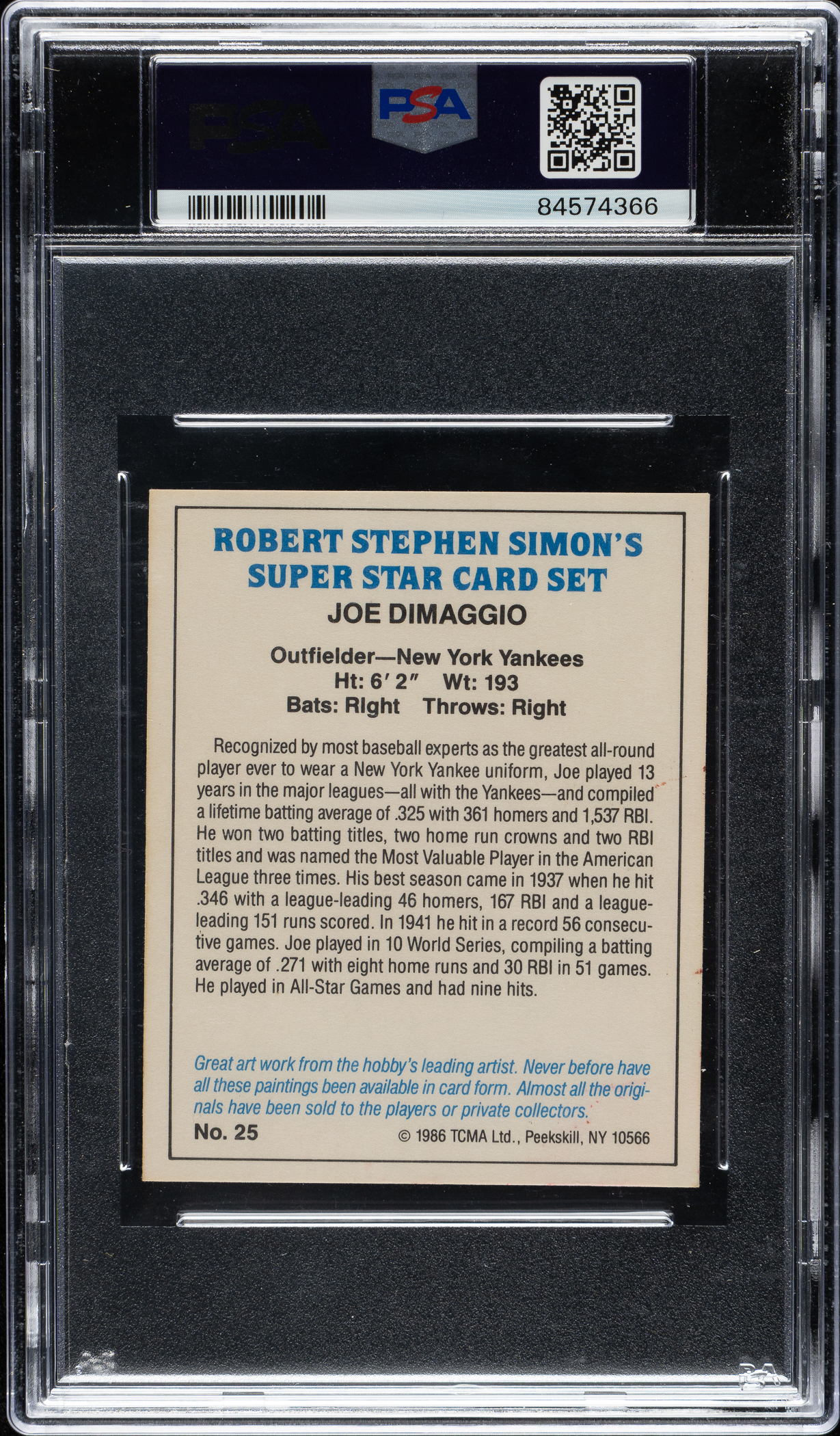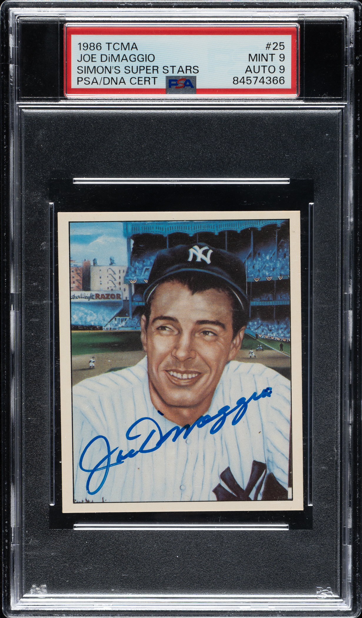 PSA/DNA has encapsulated the card, grading both the signature and card as MINT 9. New York Yankees Hall of Famer Joe DiMaggio.