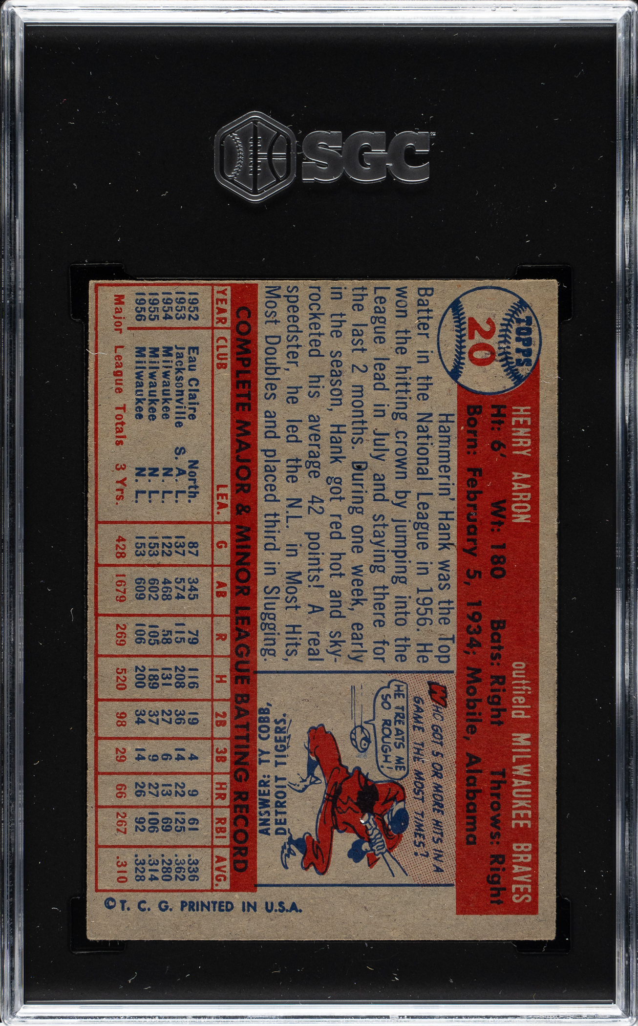 Graded EX/NM 6 by SGC. Milwaukee Braves Hall of Famer Hank Aaron.