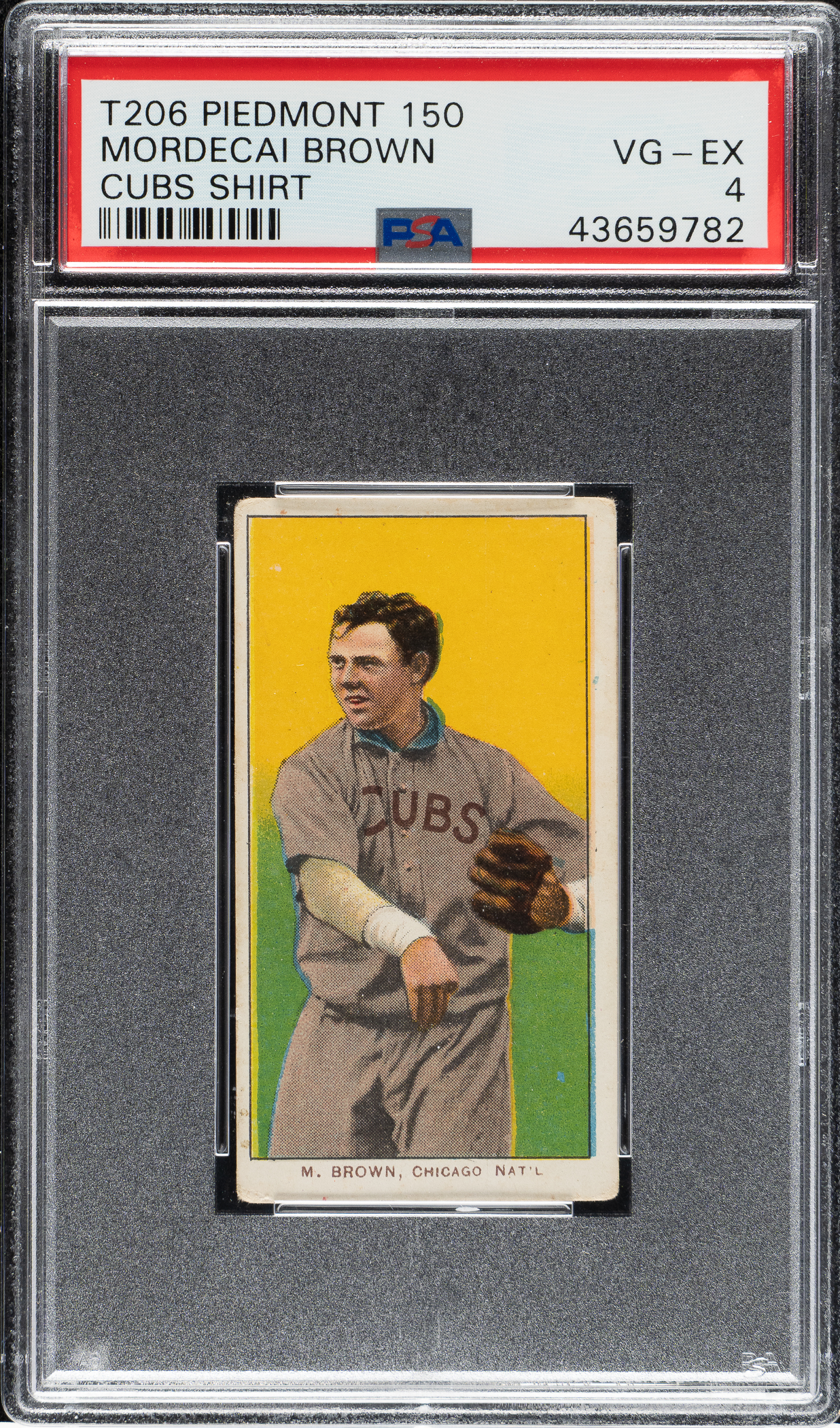 Graded VG-EX 4 by PSA. Chicago Cubs Hall of Famer Mordecai Brown.
