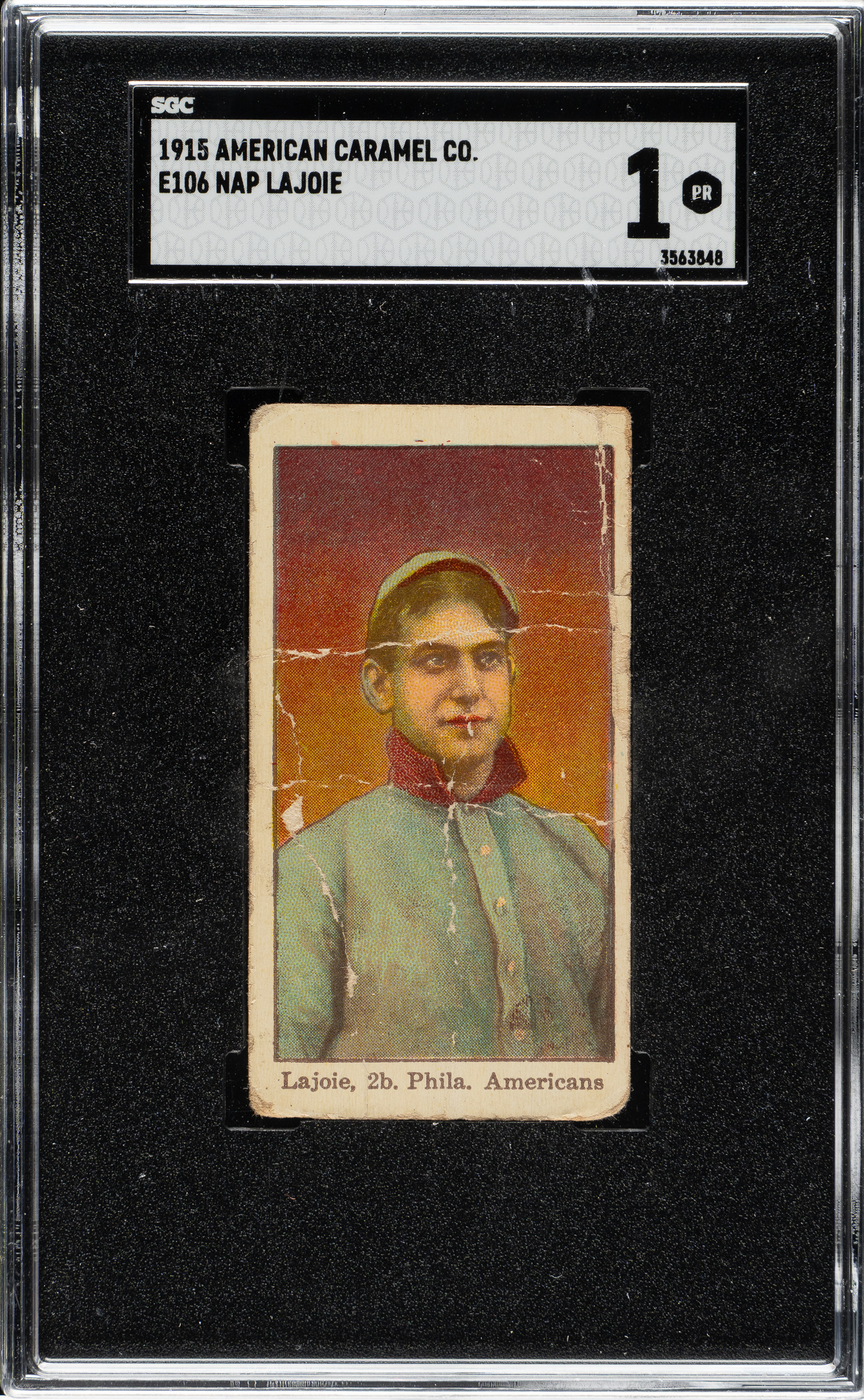 Graded POOR 1 by SGC. Hall of Famer Nap Lajoie as a member of the Philadelphia Athletics.