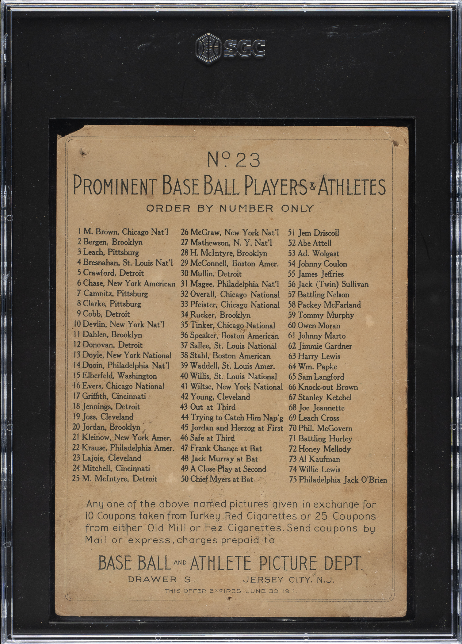 Graded POOR 1 by SGC. Cleveland Naps Hall of Famer Nap Lajoie.