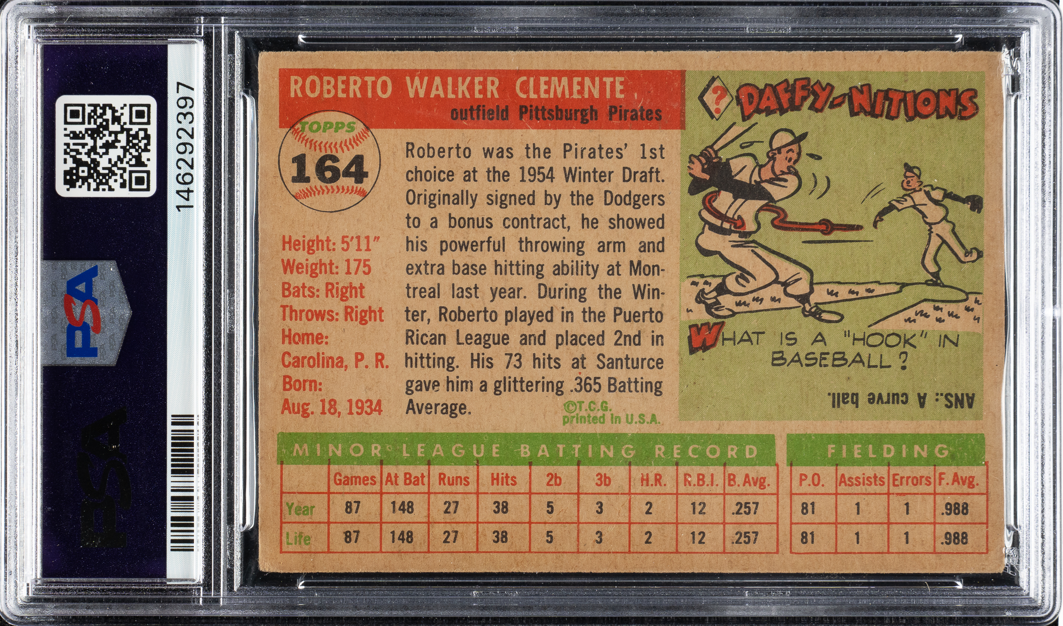 Graded GOOD+ 2.5 by PSA. Pittsburgh Pirates Hall of Famer Roberto Clemente.