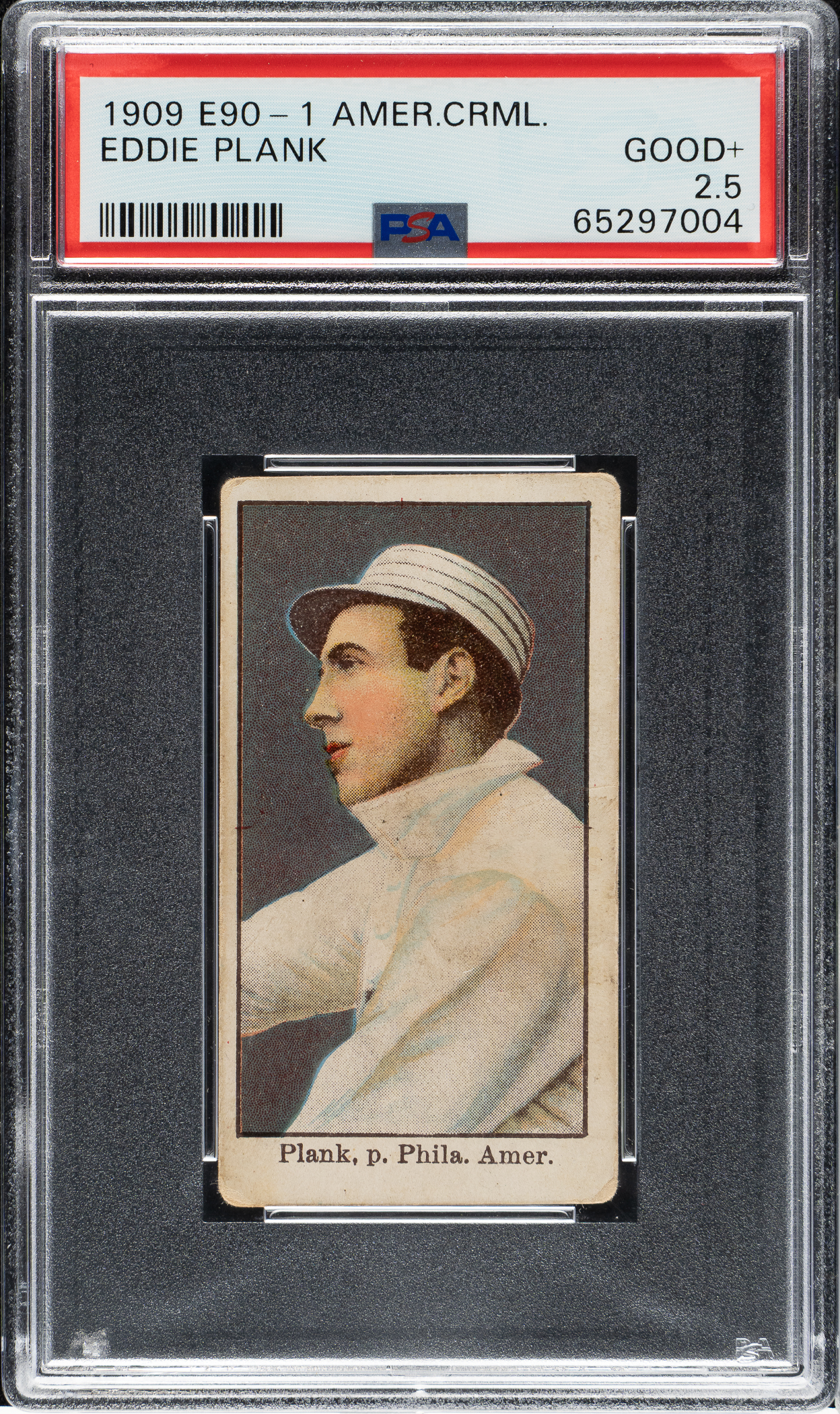 Graded GOOD+ 2.5 by PSA. Philadelphia Athletics Hall of Famer Eddie Plank.