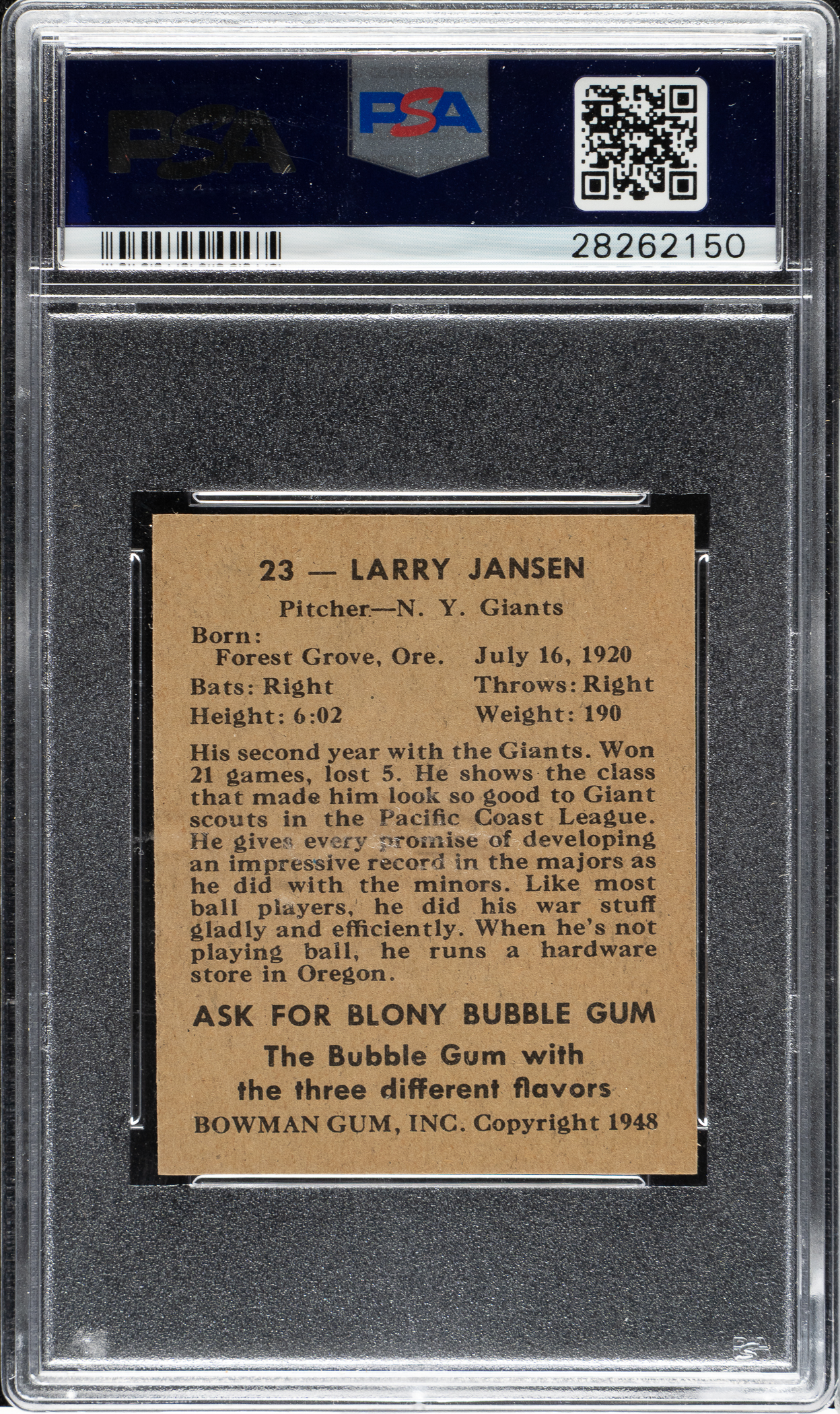 Graded MINT 9 by PSA. New York Giants. Only one example grades higher.