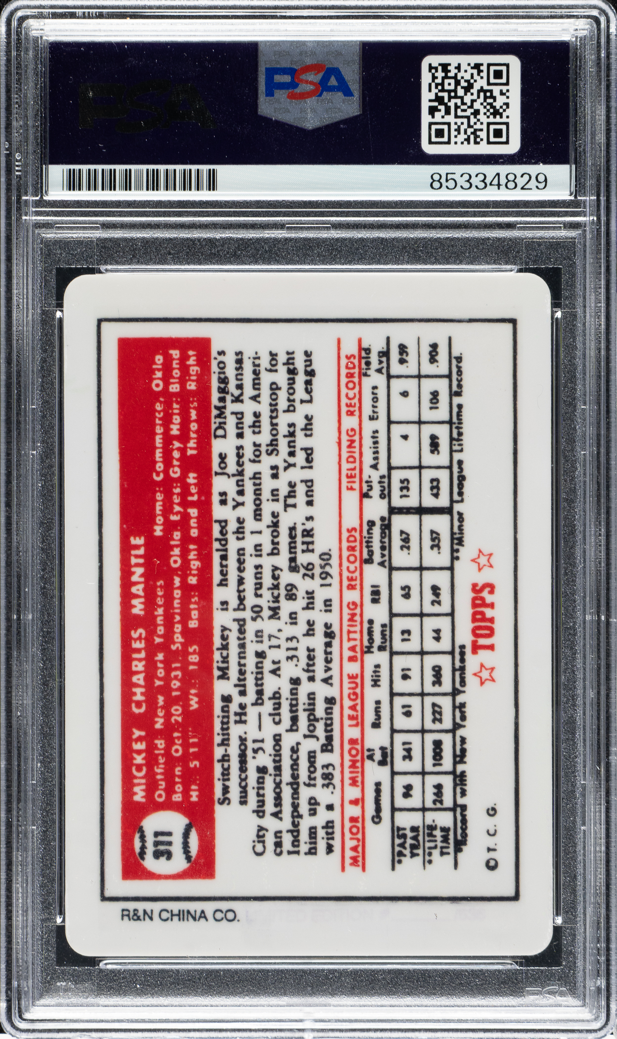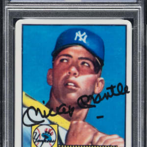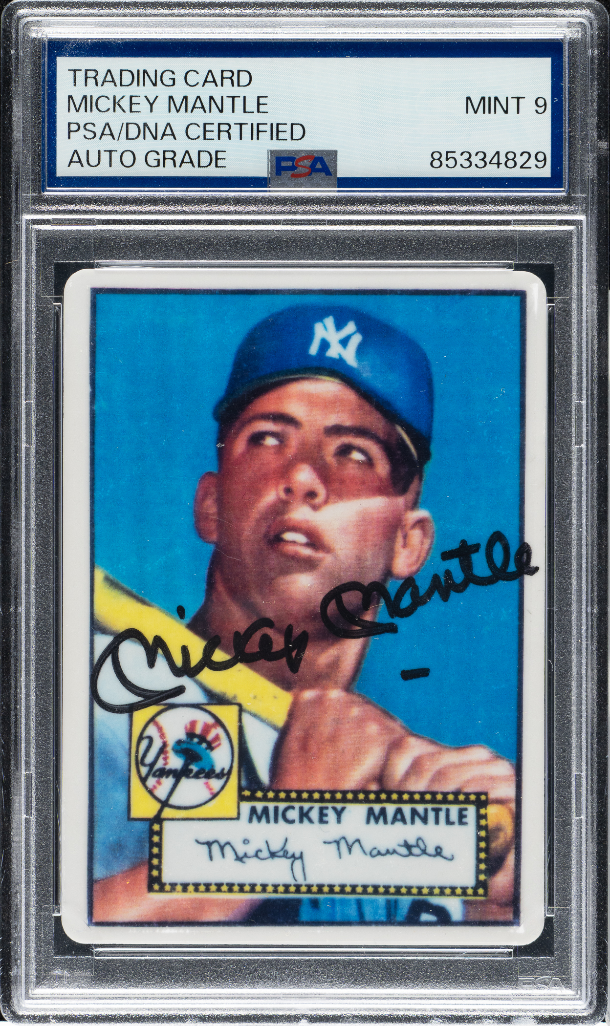 PSA/DNA has encapsulated the card, grading the signature MINT 9. New York Yankees Hall of Famer Mickey Mantle.