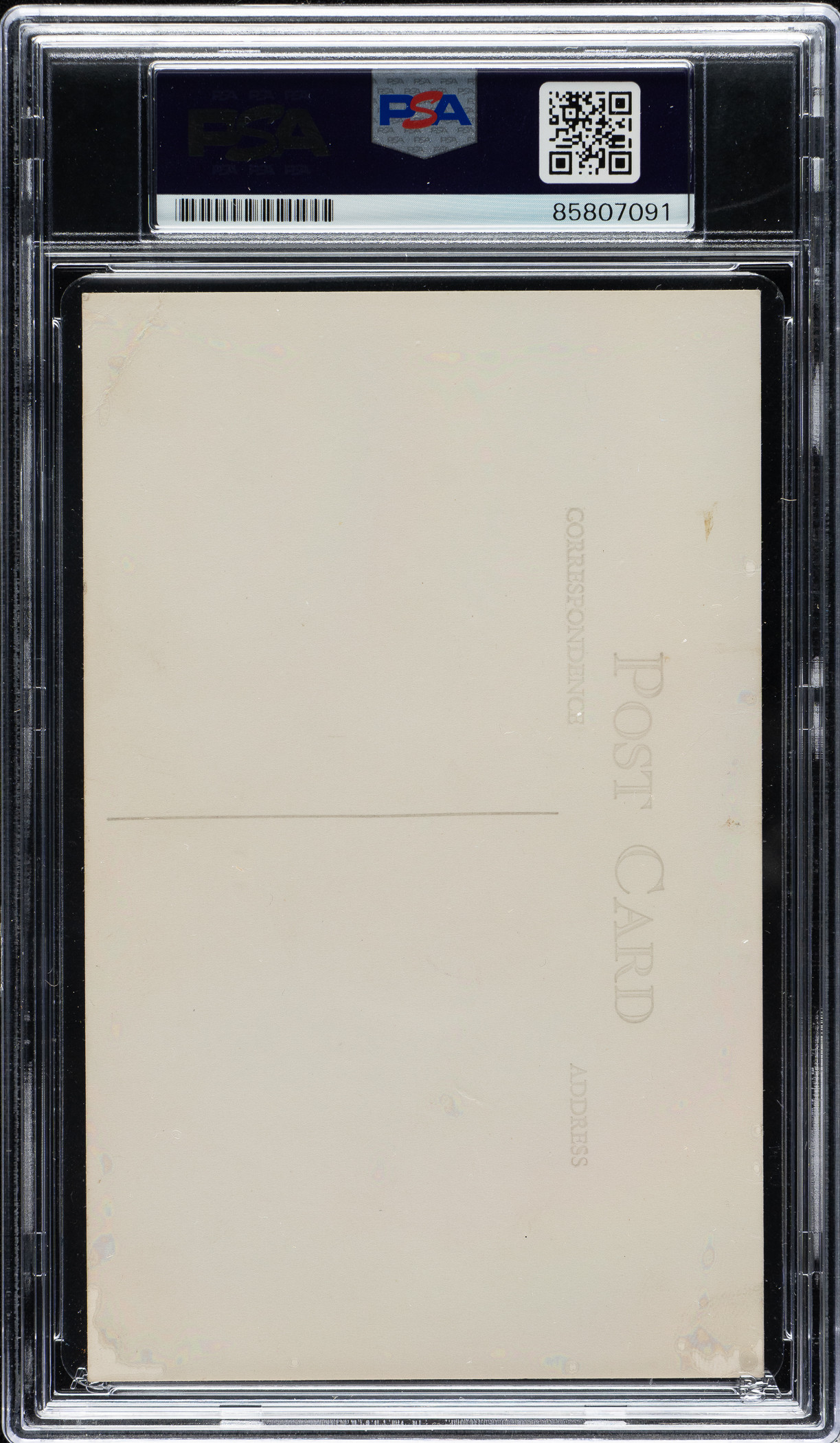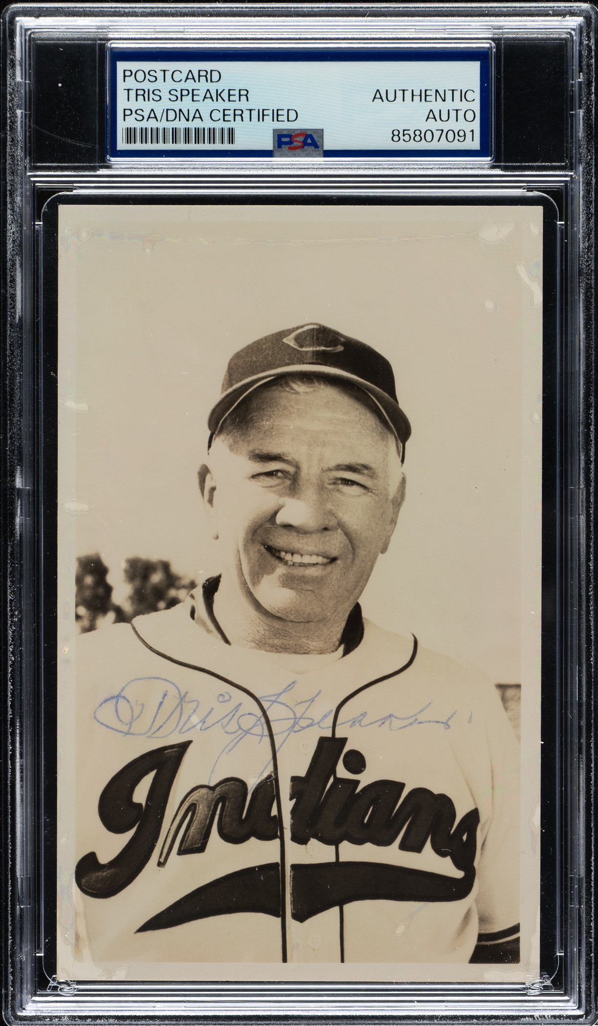 PSA/DNA has encapsulated the postcard, certifying the signature as "Authentic." Cleveland Indians Hall of Famer Tris Speaker.