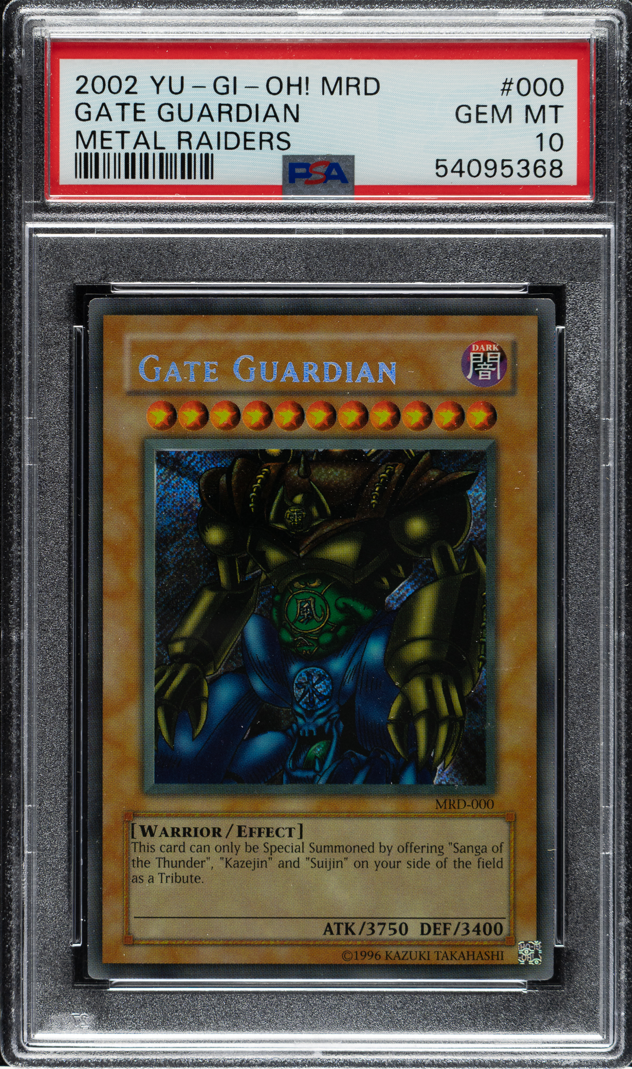 Lot # 3216: 2002 Yu-Gi-Oh! Metal Raiders #000 Gate Guardian Secret Rare Holographic PSA GEM MINT 10