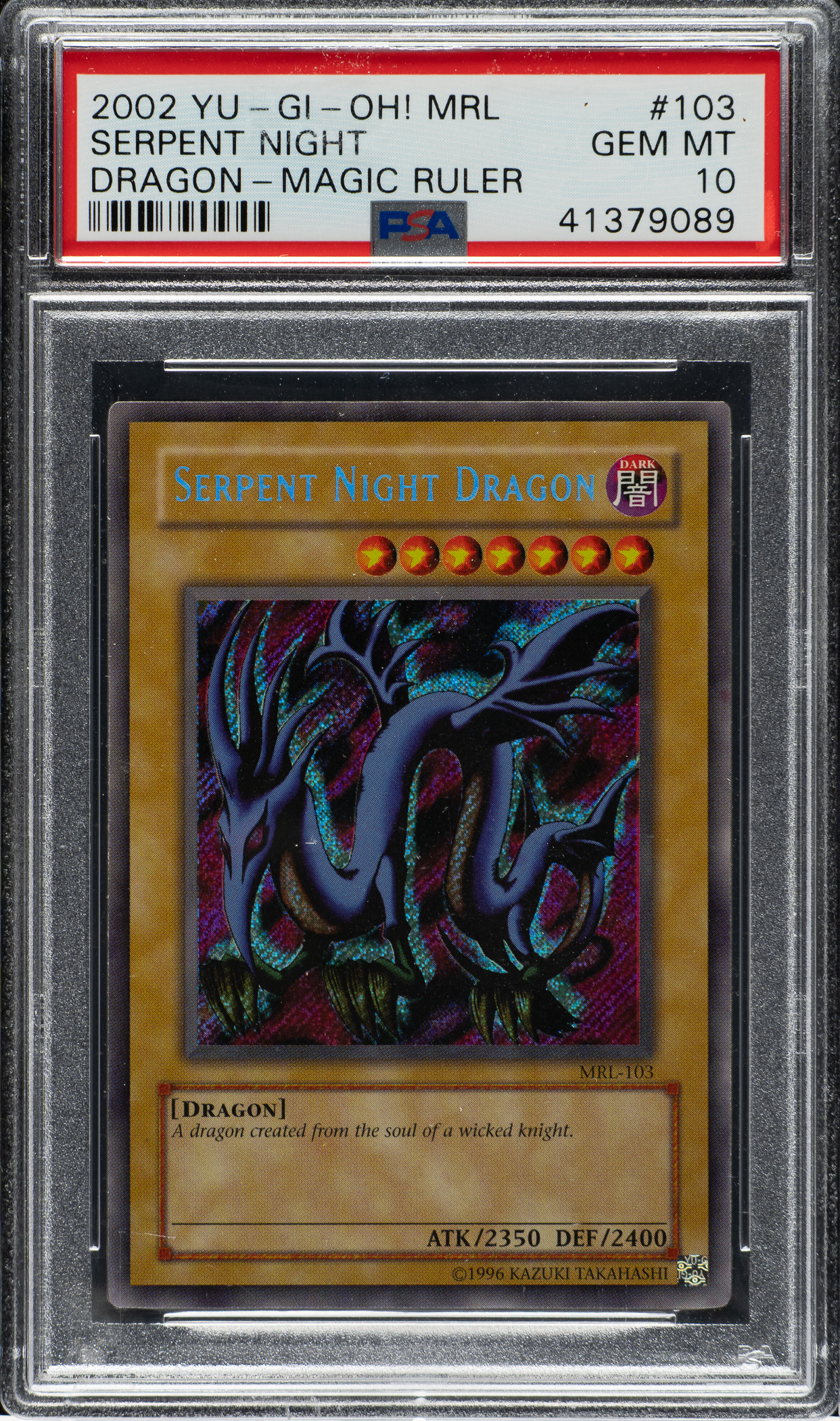 Lot # 3215: 2002 Yu-Gi-Oh! Magic Ruler #103 Serpent Night Dragon Secret Rare Holographic PSA GEM MINT 10