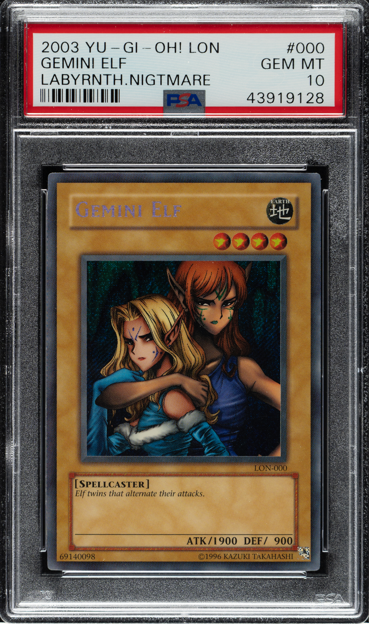 Lot # 3221: 2003 Yu-Gi-Oh! Labrynth of Nightmare #000 Gemini Elf Secret Rare Holographic PSA GEM MINT 10